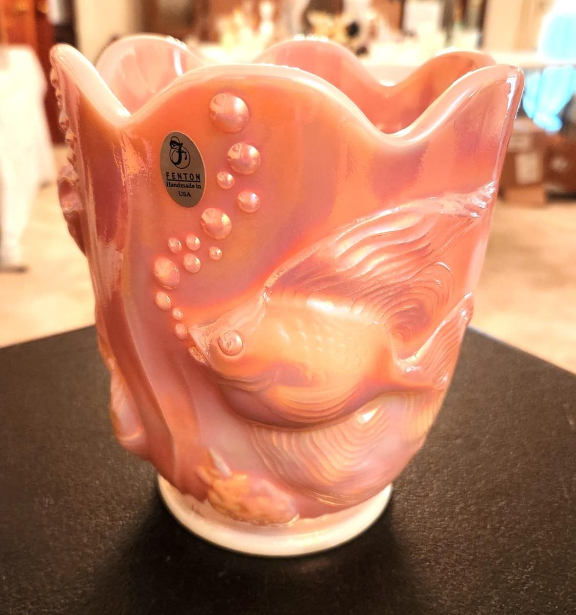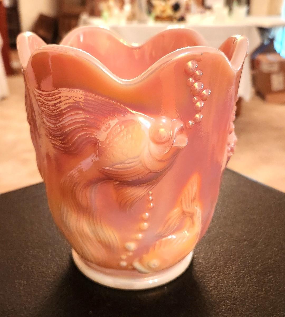 Lot #176 Fenton Art Glass Atlantis Vase - Koi Fish Design