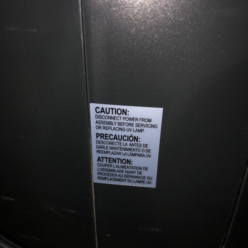 Machine powered on when tested. Machine measures 6” x 9” x 29”.