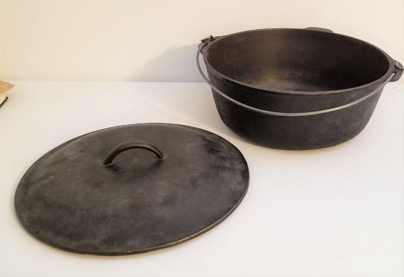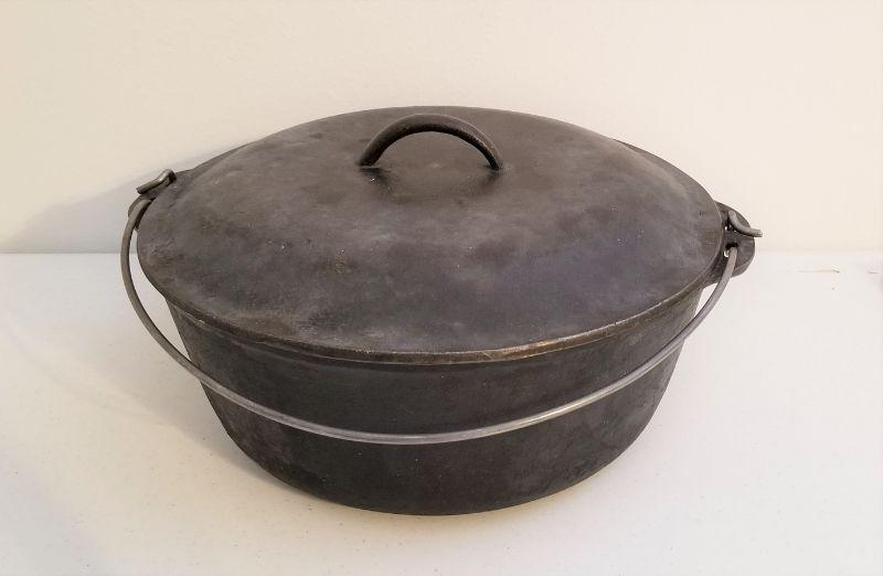 Nice vintage (heavy) Dutch Oven with lid - good vintage condition. Embossed #10 on the bottom. 14.5" across, 5" tall.