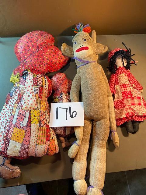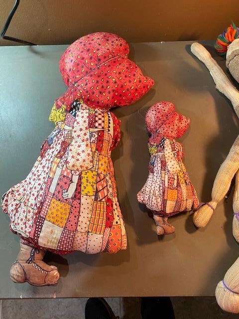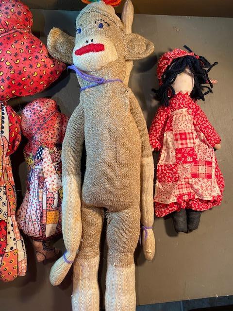 4 handmade dolls, Holly Hobbies are 18" and 9.5" tall. sock monkey is 23'" tall and other doll is 12"
