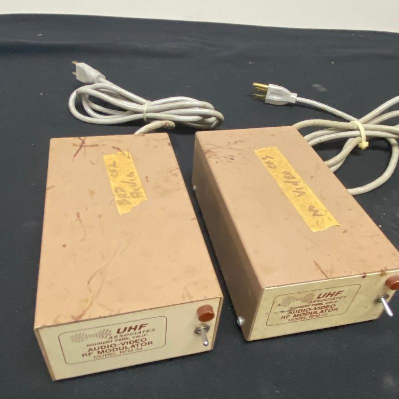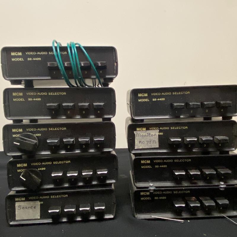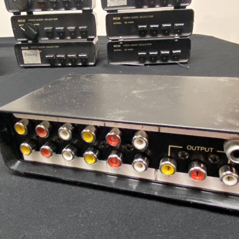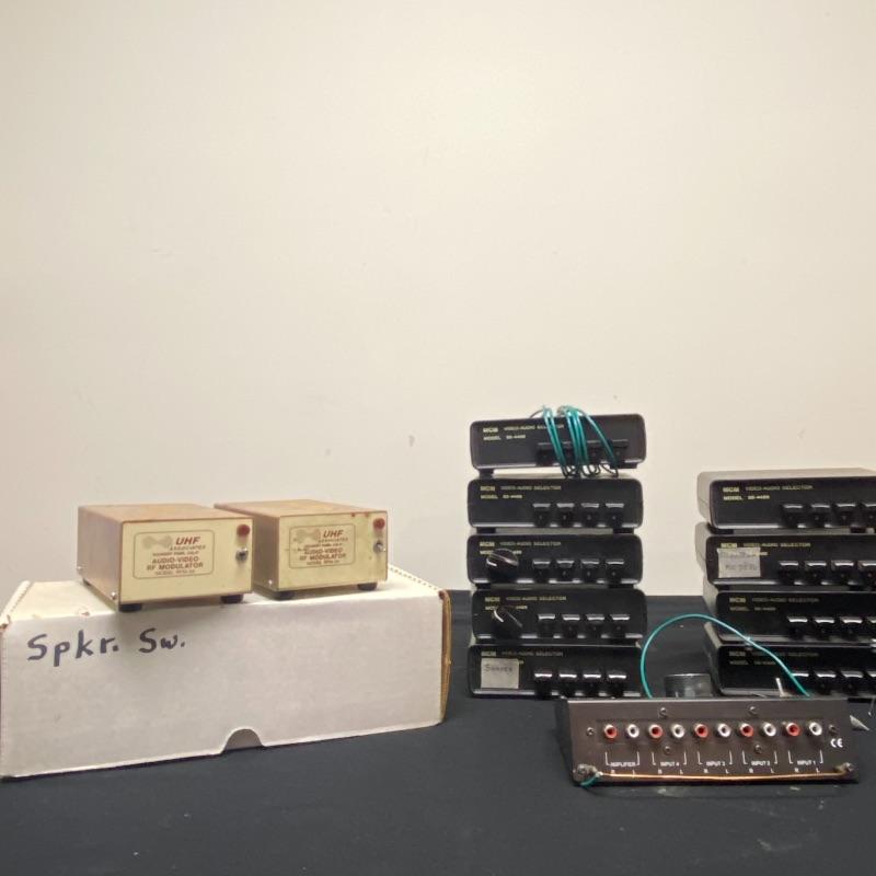 MCM video audio selector model 32““4420. Two Audio-Video RF modulators. Model RF ““ 34 on back of one; serial number 830206926 RFM-3426. Serial number on the back of second Audio-Video RF modulator 830607053. See photos. Packaged speaker selector switch, instruction and installation manual included.