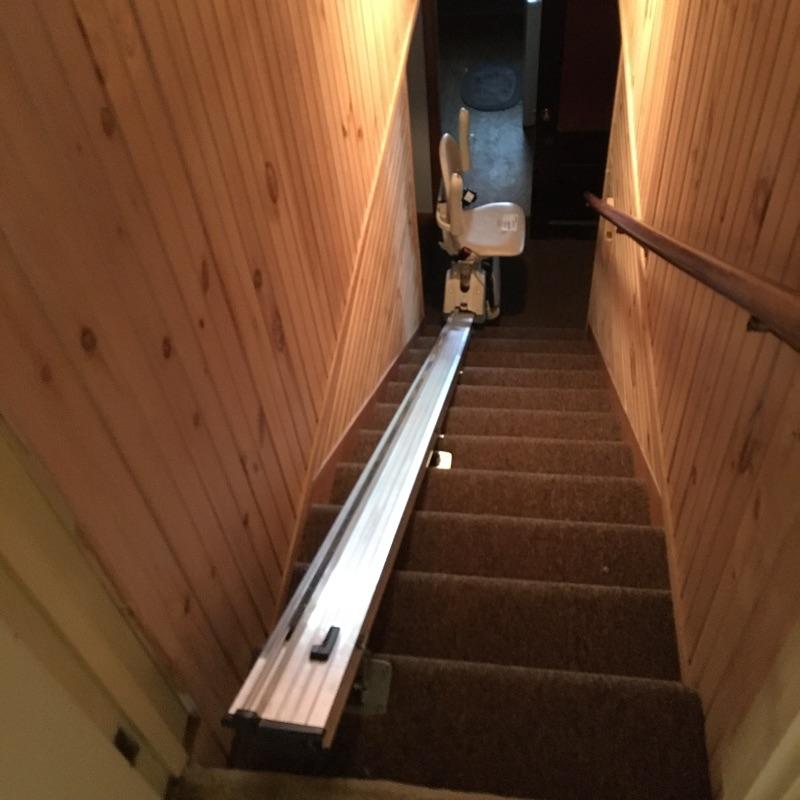 This Meditek chair lift will be a big help when the stairs become difficult to climb.