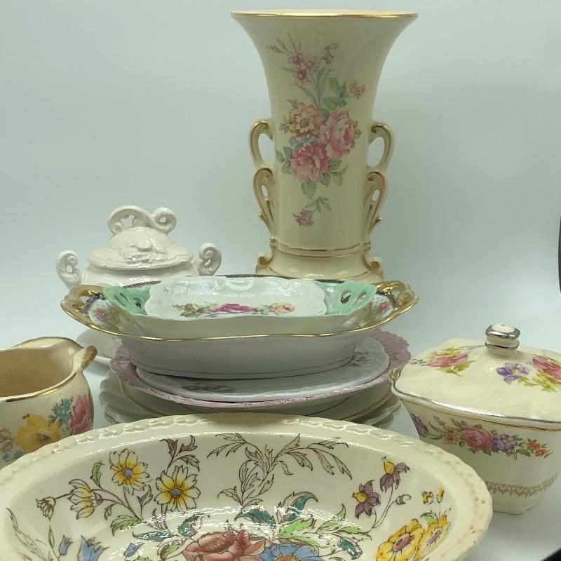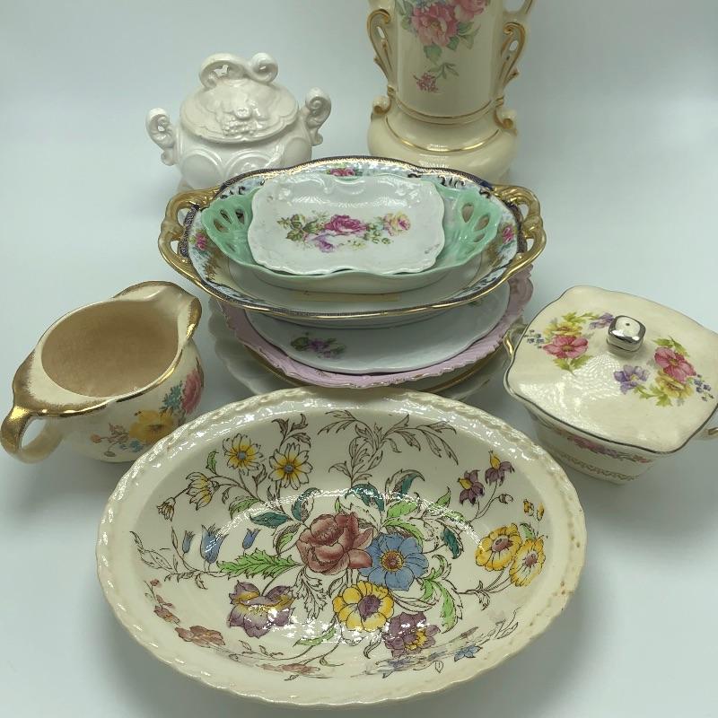 This collection of older China brings back memories of grannie’s kitchen and holiday gatherings. Unique, delicate patterns and rich colors make this assortment special.