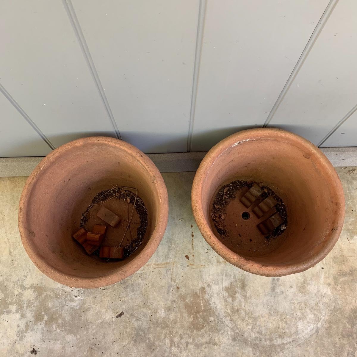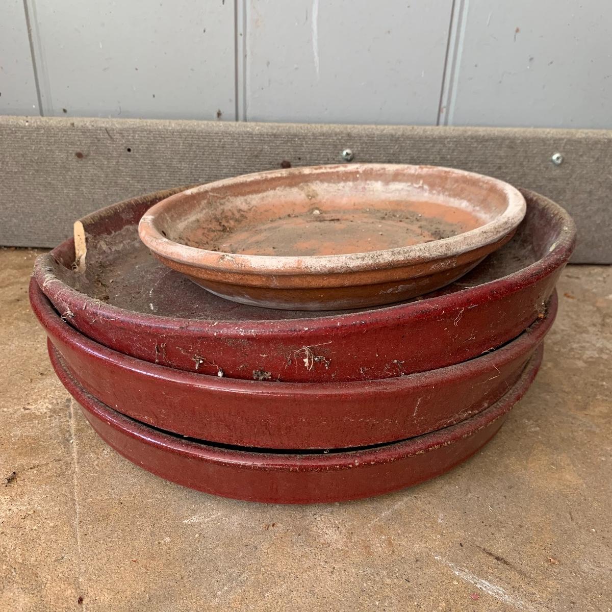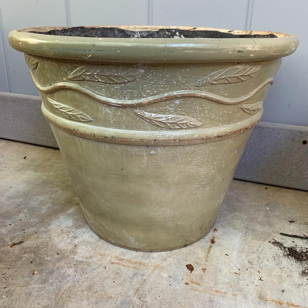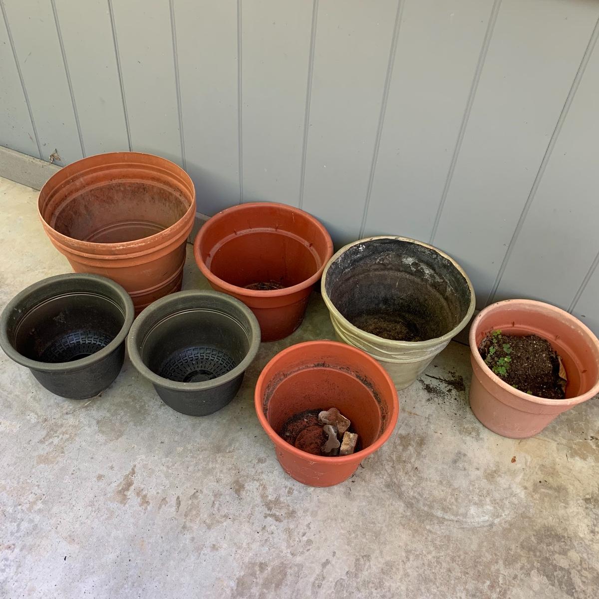 Imagine all the beautiful flowers, houseplants, herbs, and veggies you could plant in this large variety of planters! There are 15 pots in this lot, including a couple smaller decorative pots, and many larger pots. The majority are ceramic and in excellent condition (just dirty from being outside). A couple have chips or cracks, but still function just fine. In addition to the pots, there are a few plant saucers and some plant stand bricks. There are also three beautiful plant stands. Two are wooden and each have two shelves, and one is metal. The tallest stand is 36.5” tall. Also included is a macrame plant hanger (hanging hook in photos is not included). Local pickup only. Please note that some of these planters are quite heavy and the winning bidder will need to move them from the back patio of a house with stairs.