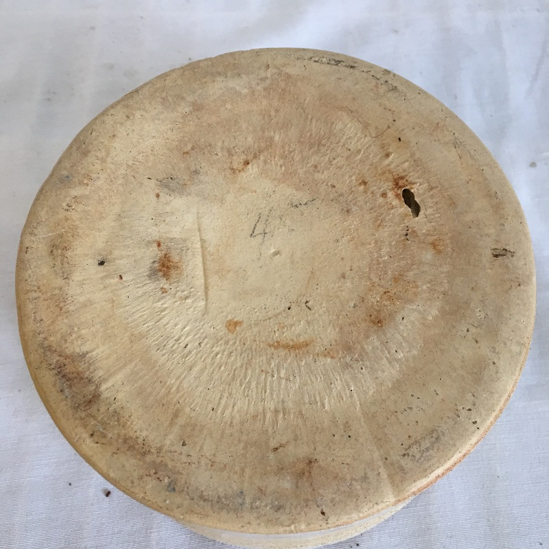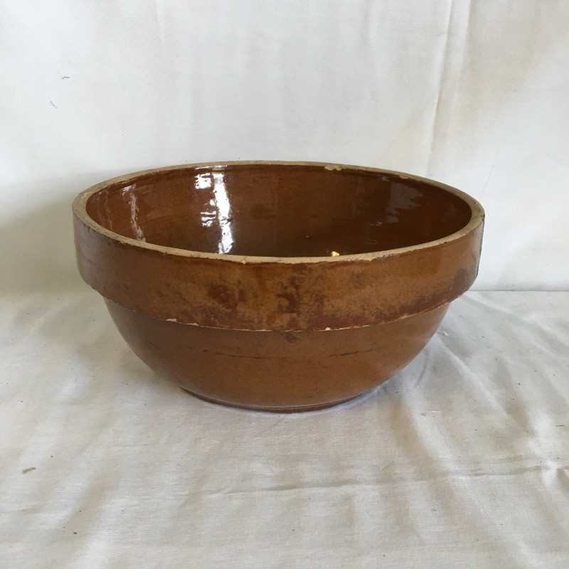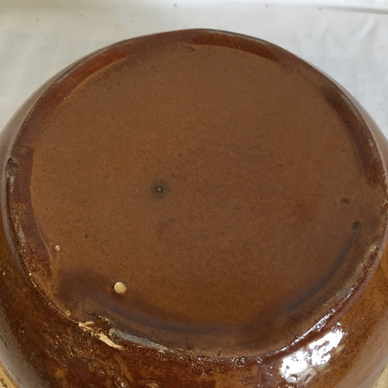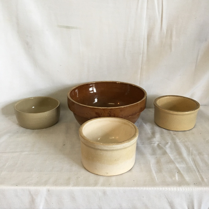 Four pottery bowls including three smaller bowls and one larger bowl. Largest bowl measures 10.5” D x 5” tall.