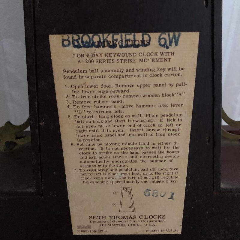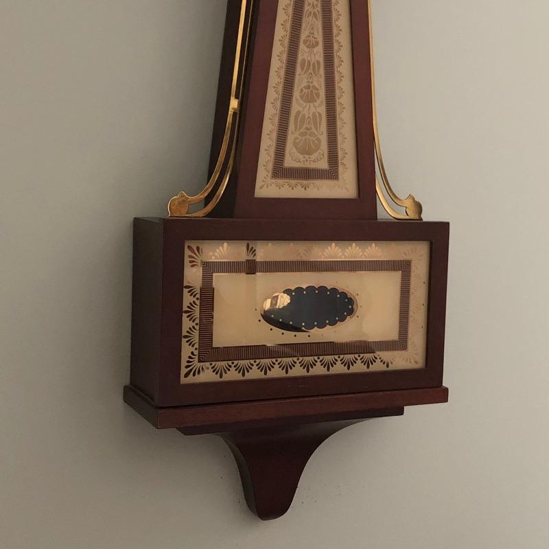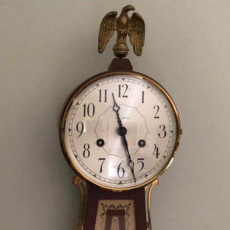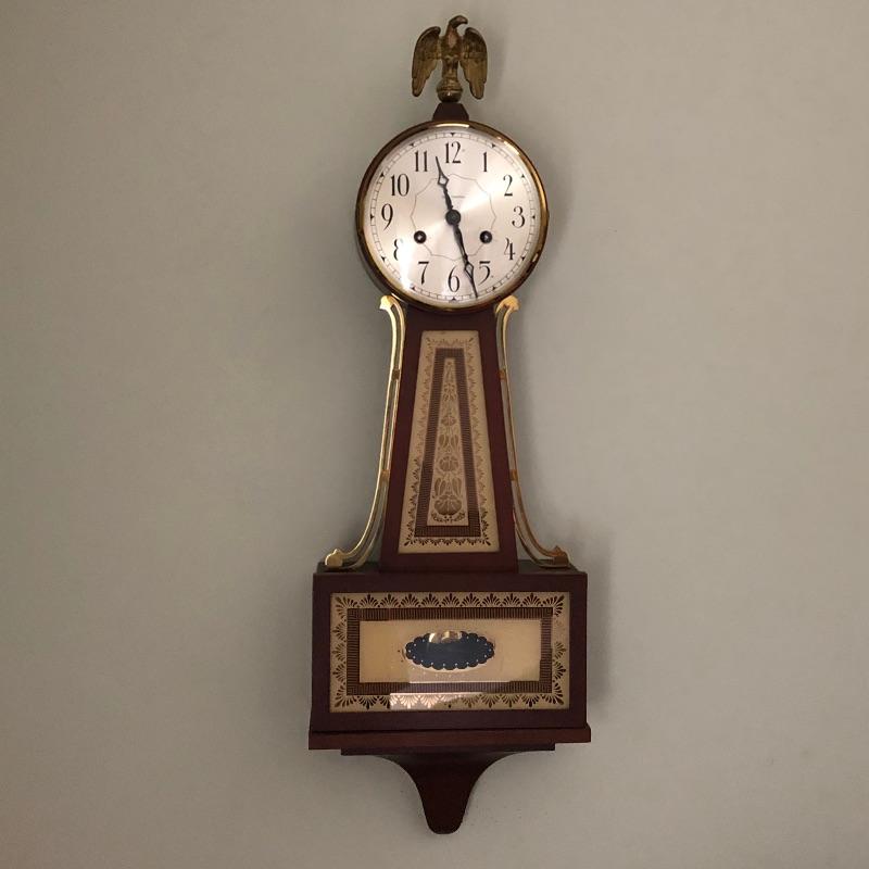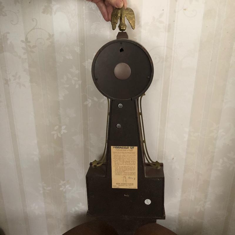 This elegant ready to hang wall clock by Seth Thomas has lovely detail. It is numbered 6801. There is no key so clock is unable to be tested. Piece measures 9.5” x 5” x 29”. For shipping please call UPS at 828 252-6930 for a quote.