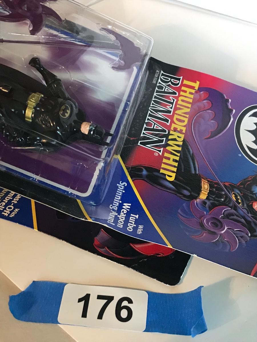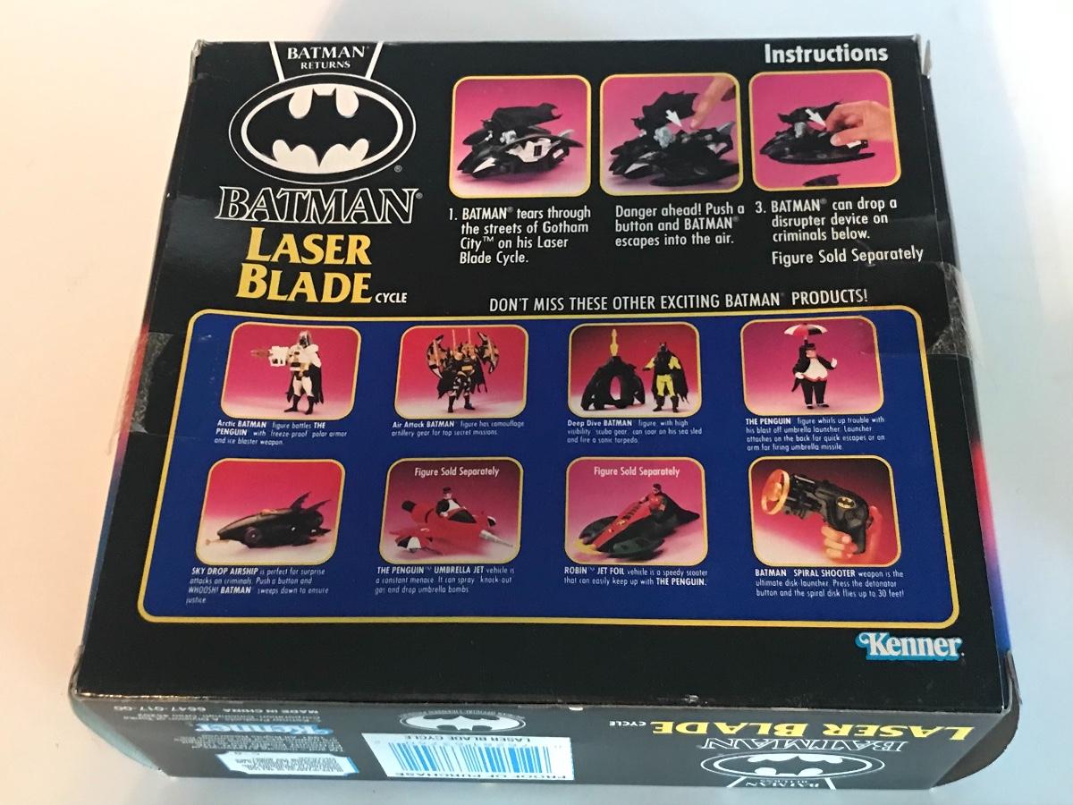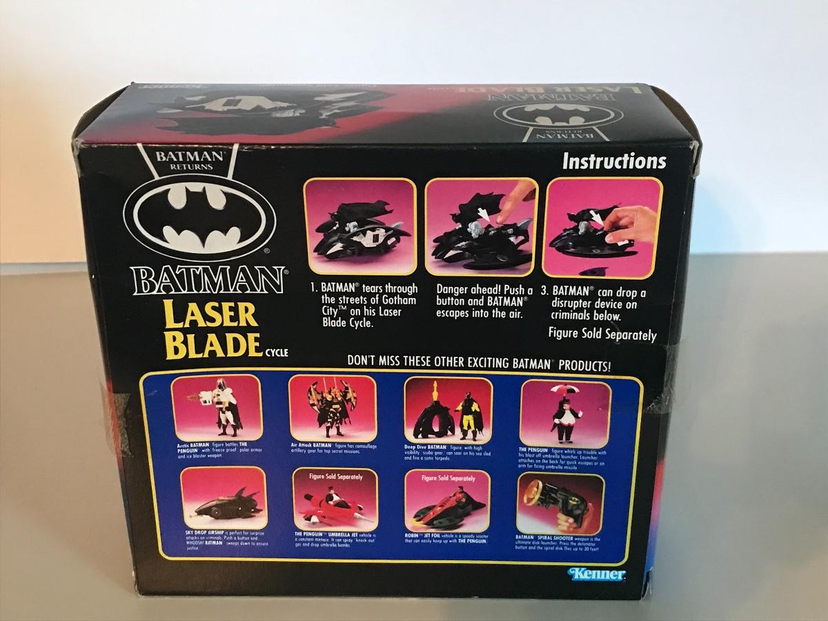 Batmobile model, Batman Thunderwhip, a Laserblade Cycle, and The Penguin with umbrella. All in original package. Please see all pictures as they are the best representation of the items. The pictures show condition, measurements if taken, and what is included in the lot. Due to the large amount that we photograph and the time frame, we are not always able to take measurements. All items unless noted, are pre-owned and have been used. If you purchased furniture, you must bring help. We do not allow one person to carry large furniture out on their own. Bring help, tools and a truck for the safety of our client’s homes, and your personal safety. Company policy. Thank you.