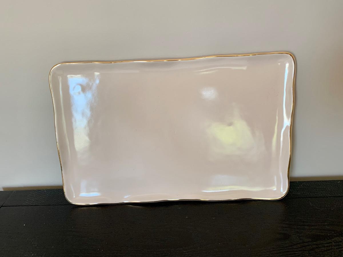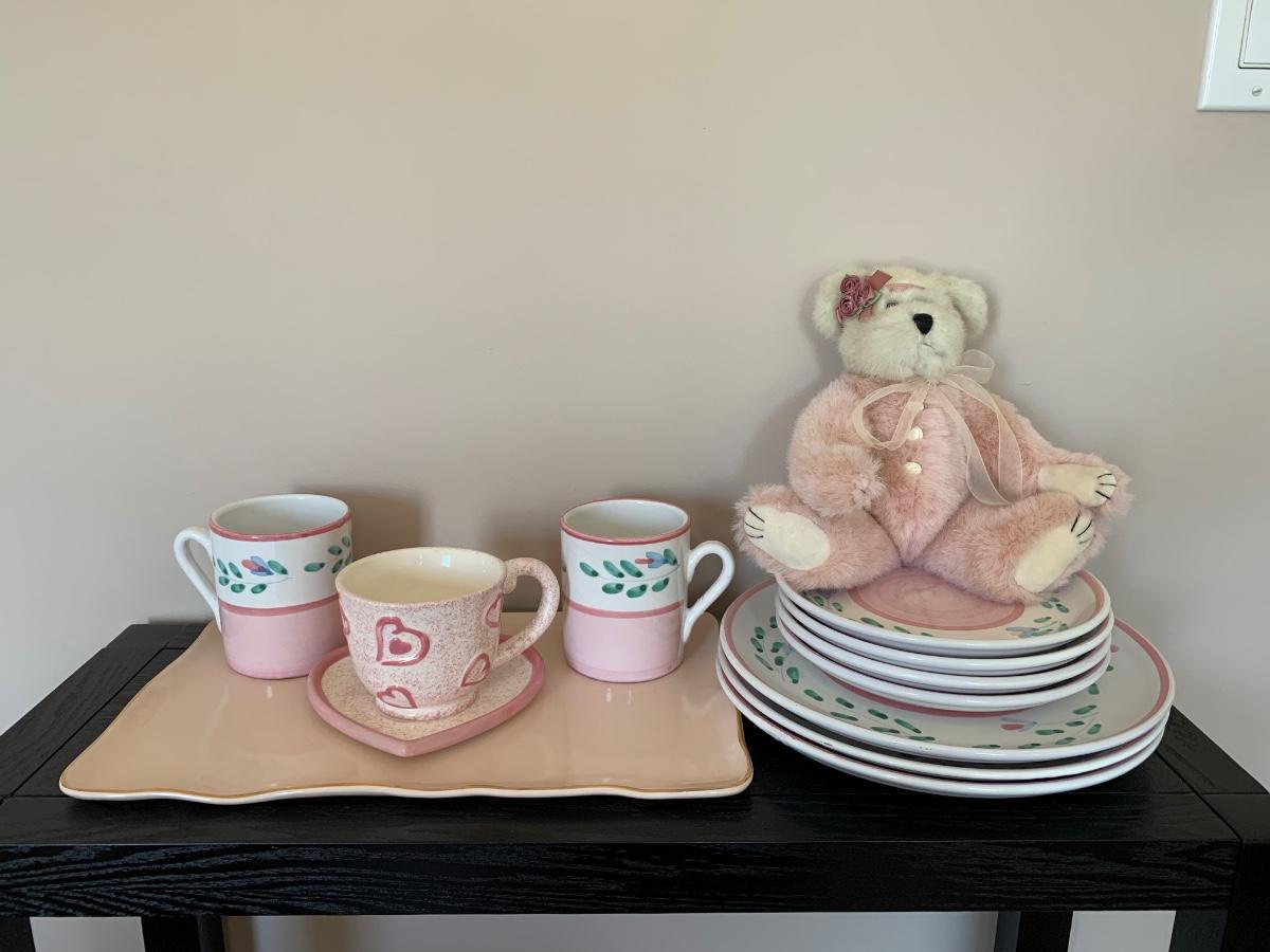 Lot 176R: Caleca Italian Pottery, Boyd's Bear, Home Decor Millennial Pink Tray & Black Media Stand