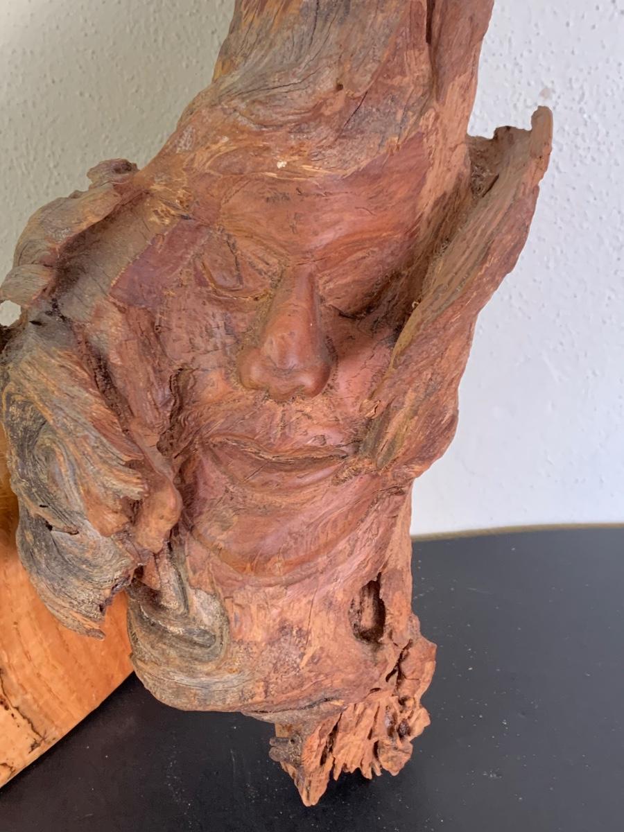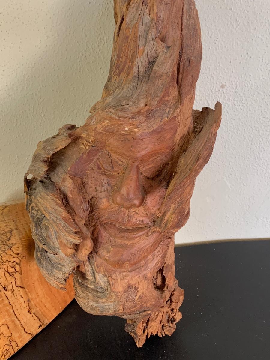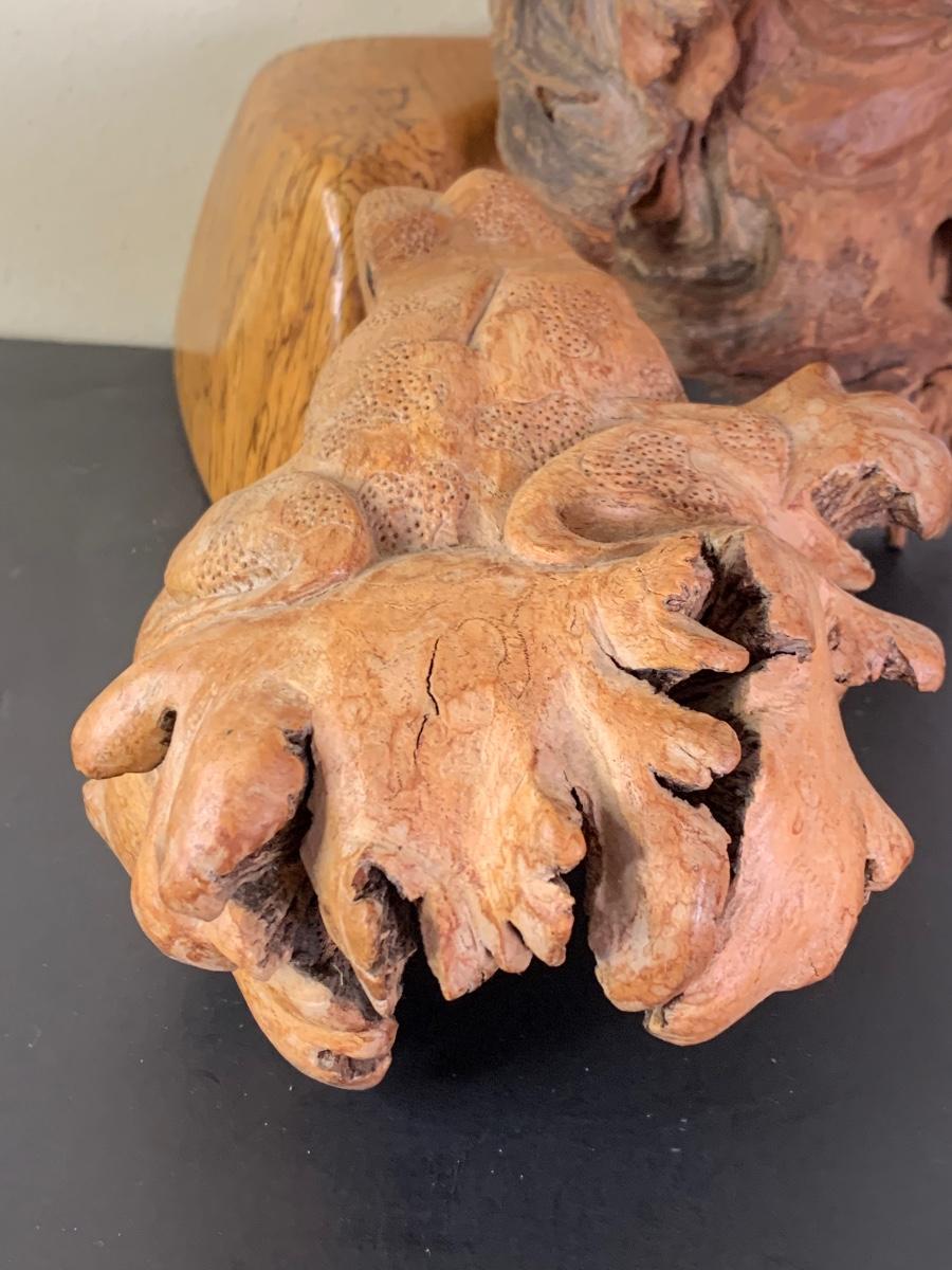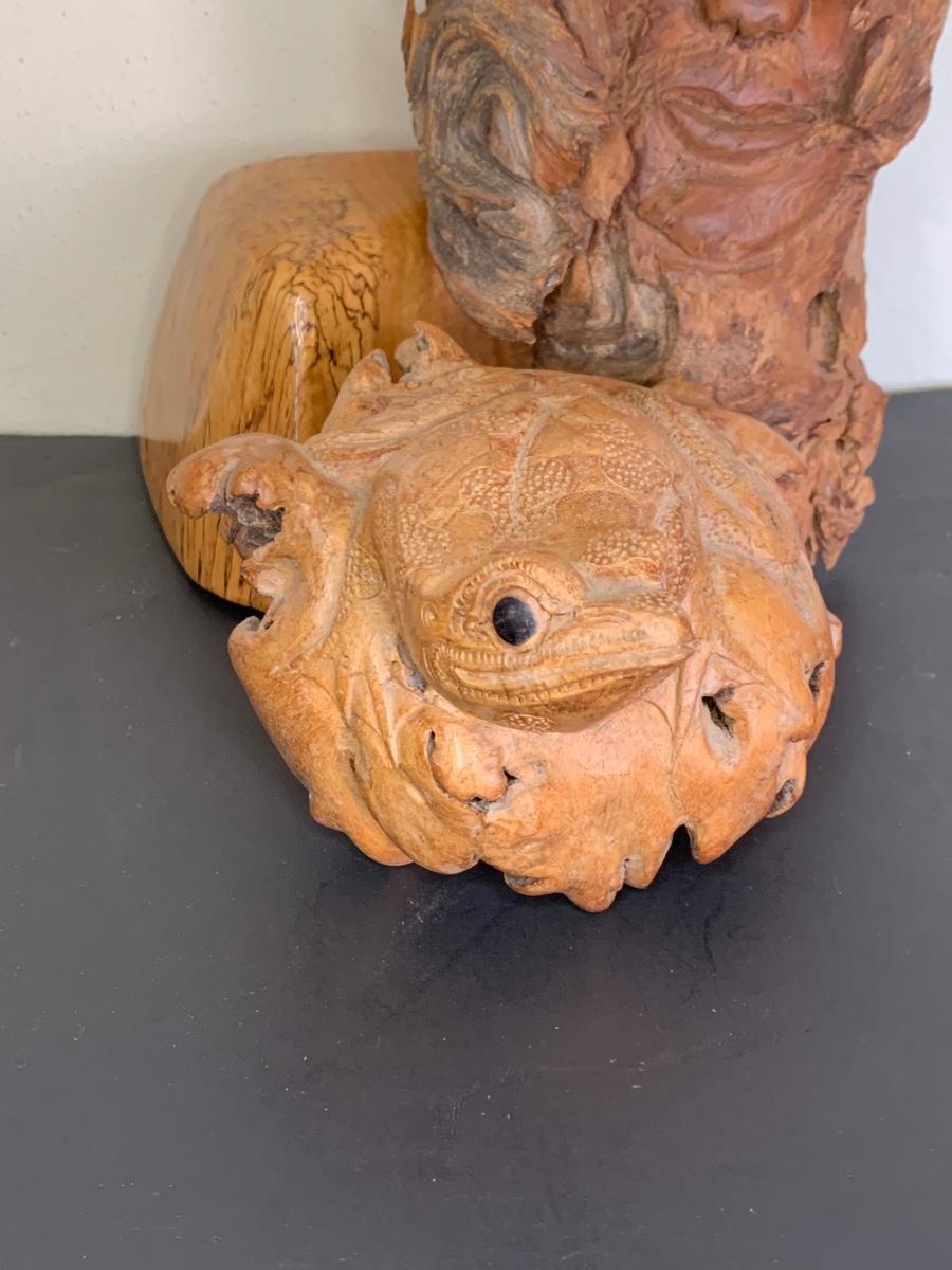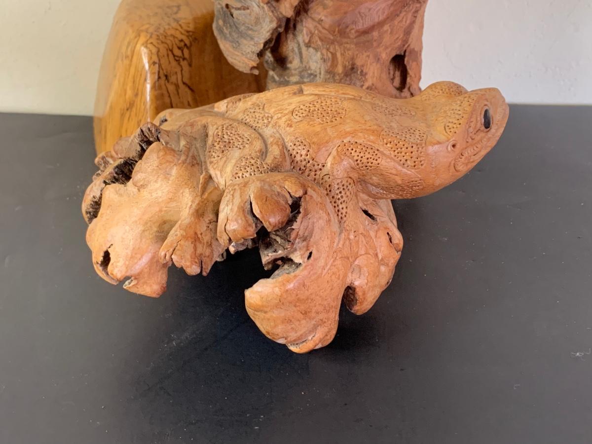 Lot 176R: Carved Tree Face, Carved Frog, Polished Wood Block