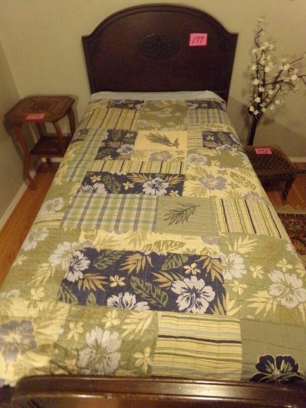 LOT 177  ANTIQUE TWIN BED AND MATTRESS