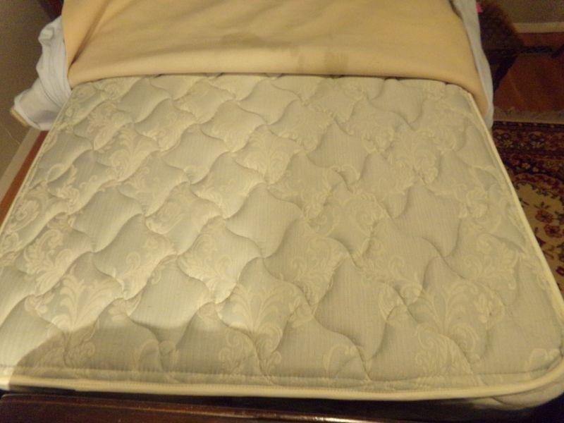 ANTIQUE WOODEN TWIN BED FRAME WITH NEWER NICE MATTRESS SET IN VERY GOOD CONDITION.