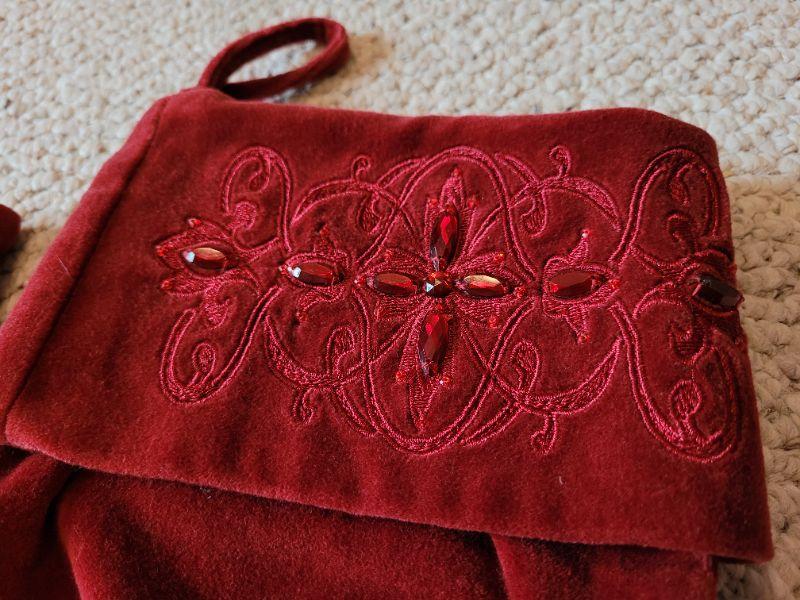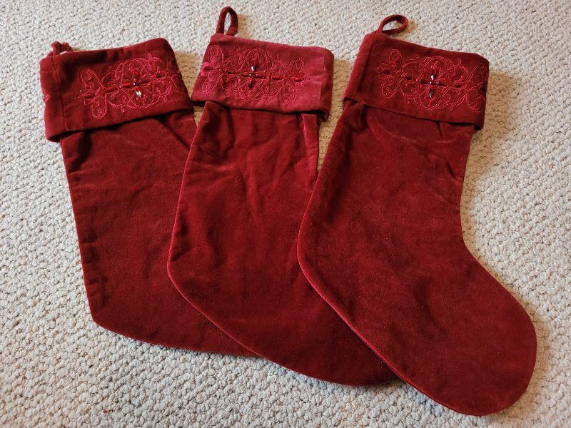Lot 177: (3) Dark Red Fancy Christmas Stockings