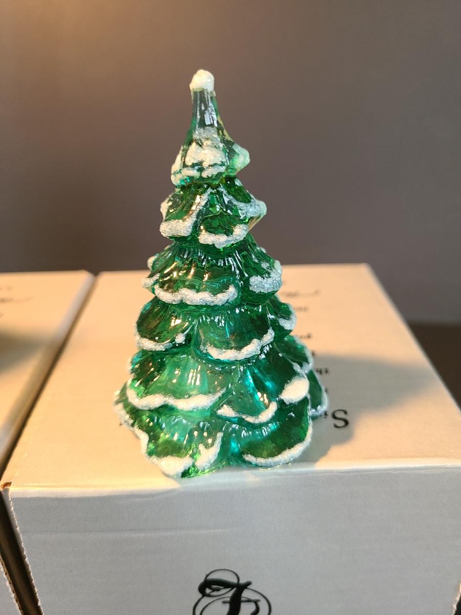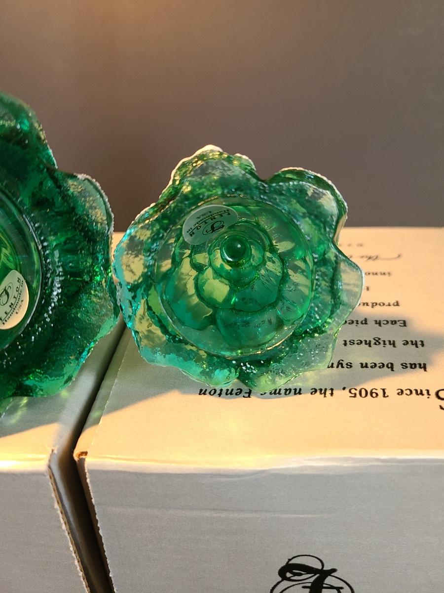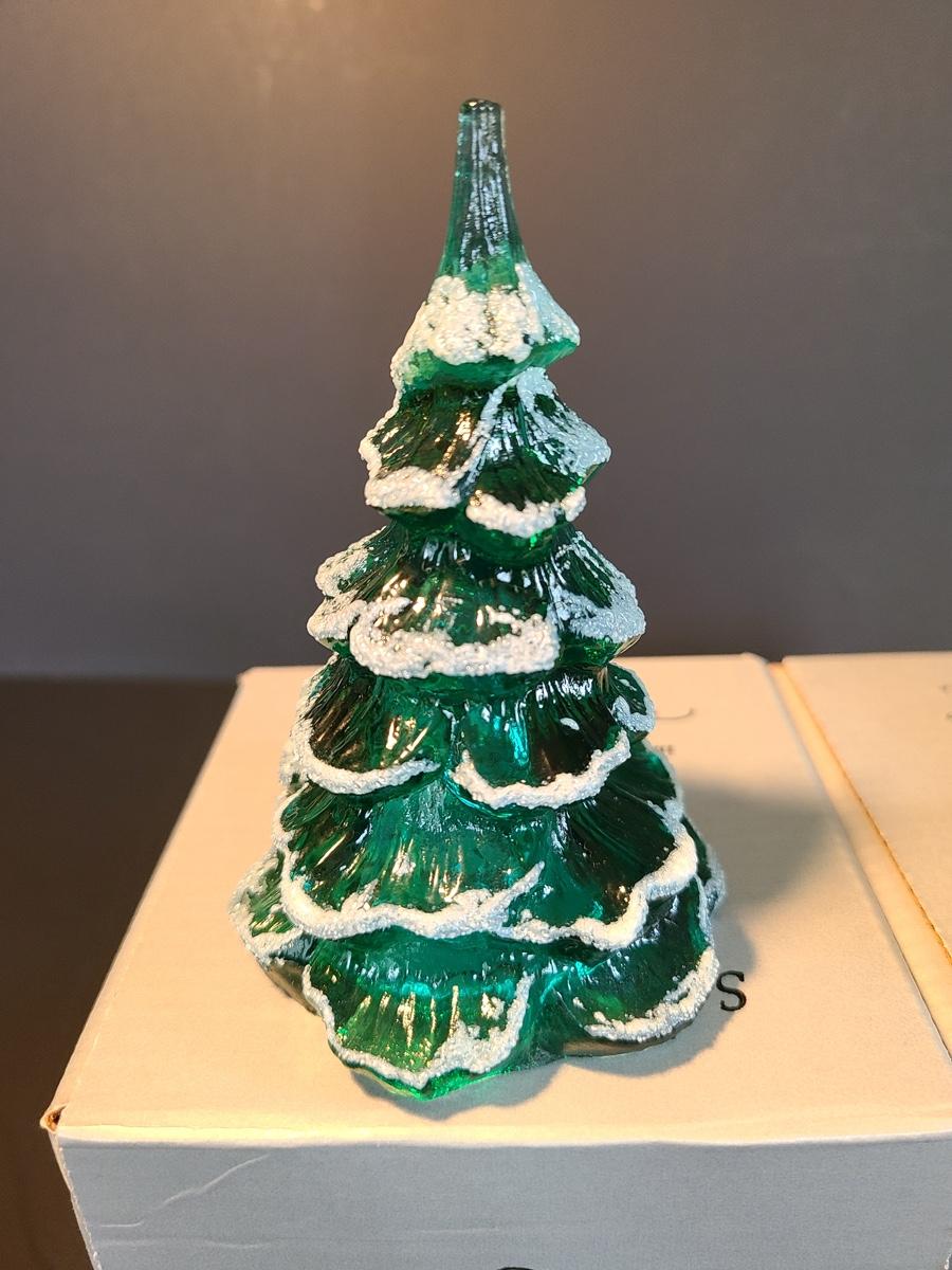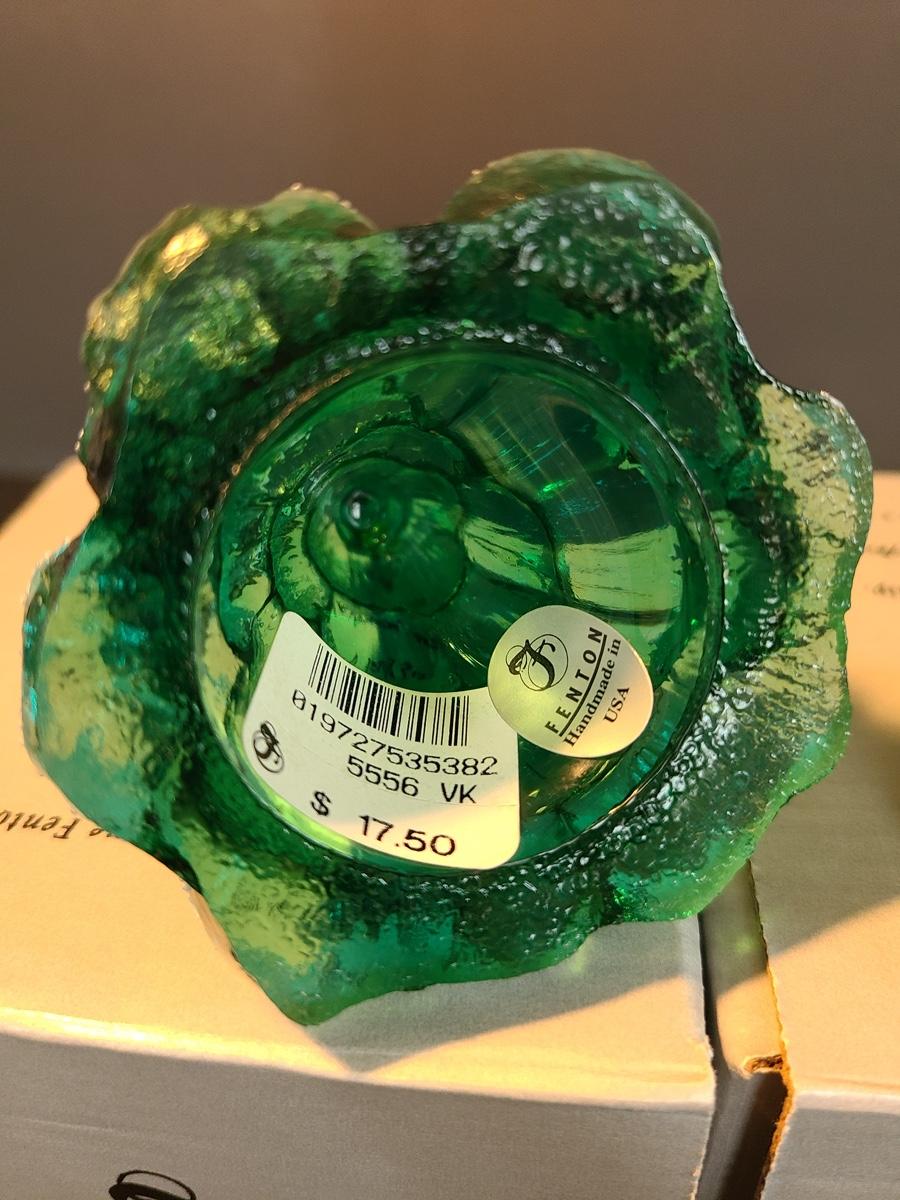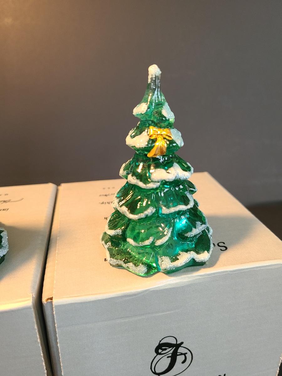 Lot 177: Fenton Emerald Green Trees Med & Small with Gold Bows. (HTF)