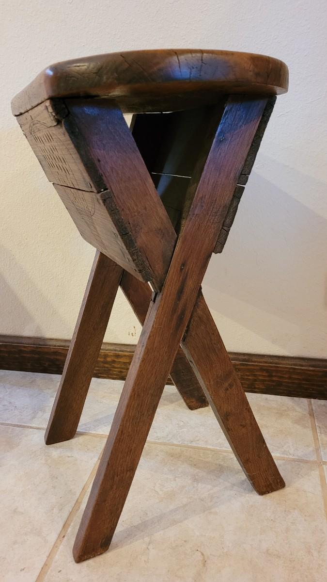 Lot 177: Antique Primitive Stool with Handcarved Design