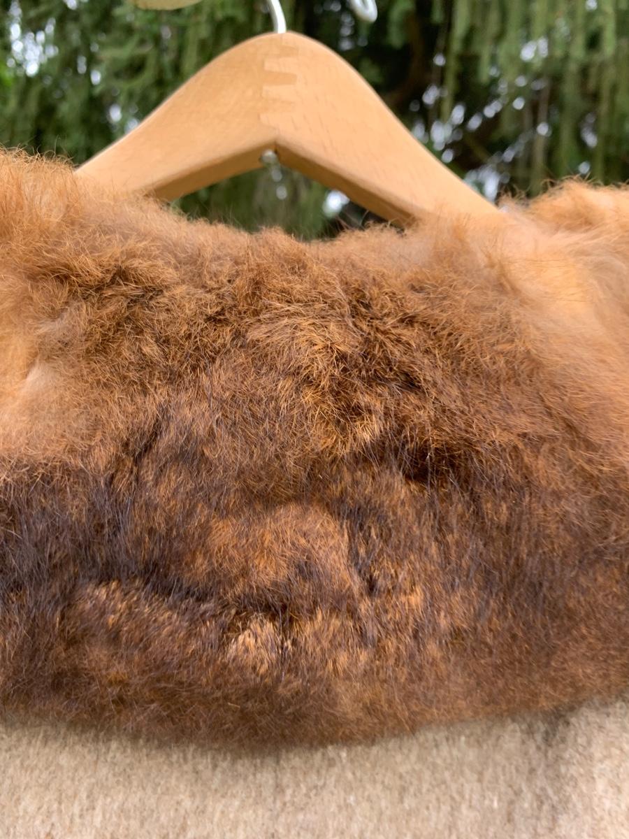 Clean, lined vintage wool coat with fur collar. Made in USA tag, no size given.