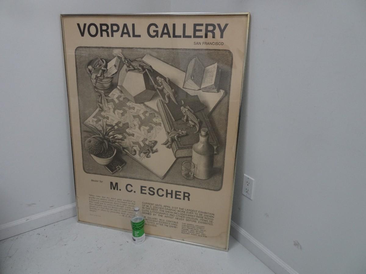 LARGE FRAMED VORPAL GALLERY POSTER M.C. ESCHER. THIS POSTER HAS WATER MARK DAMAGE CHECK PICS FOR INFO