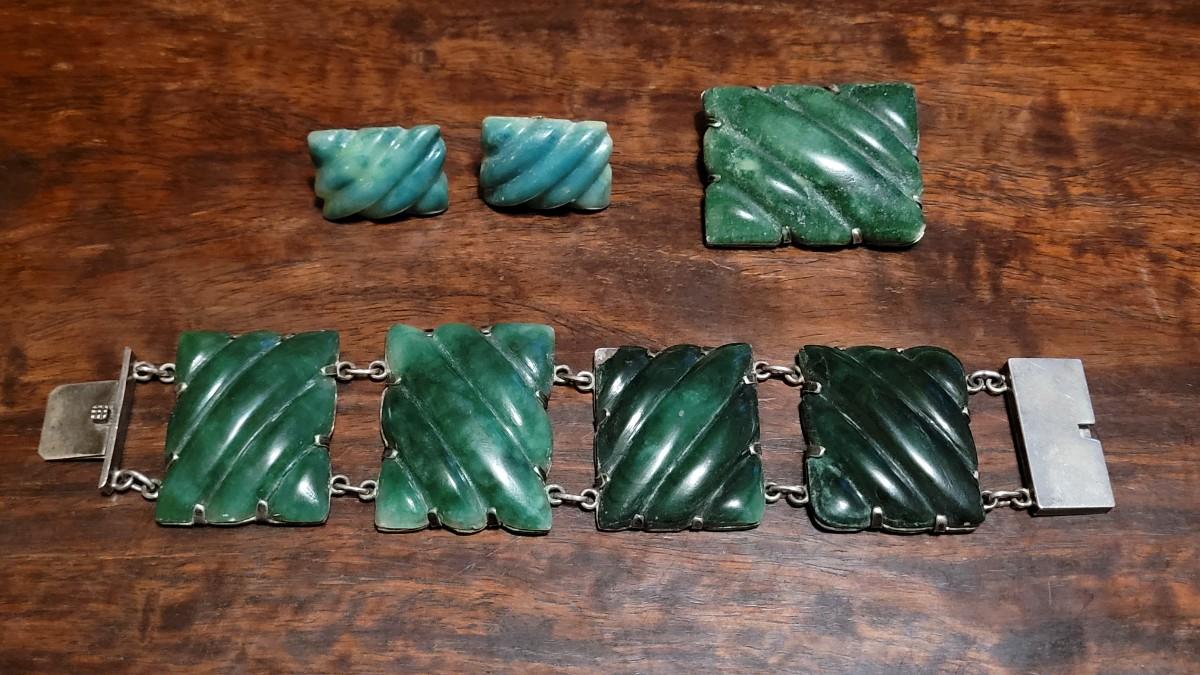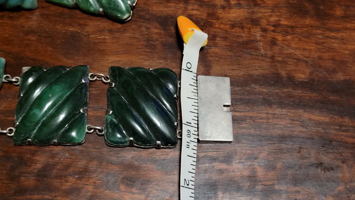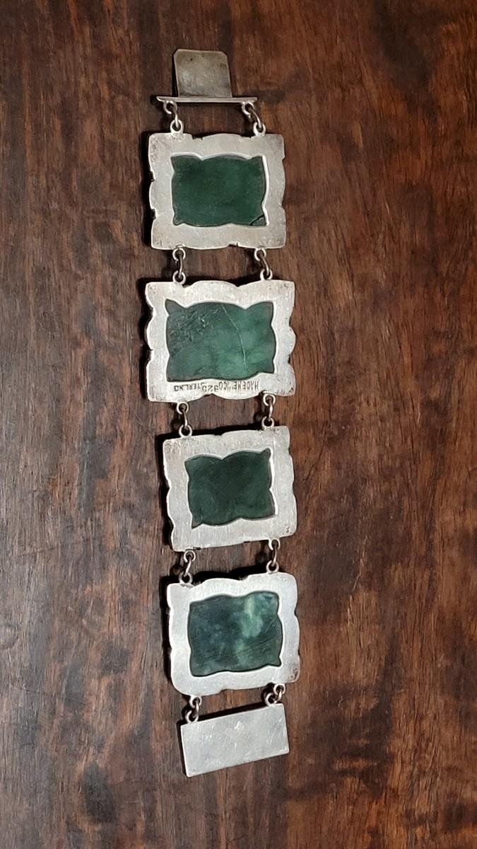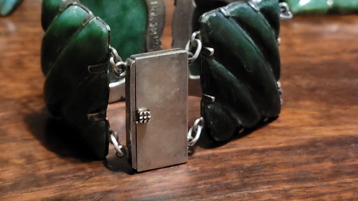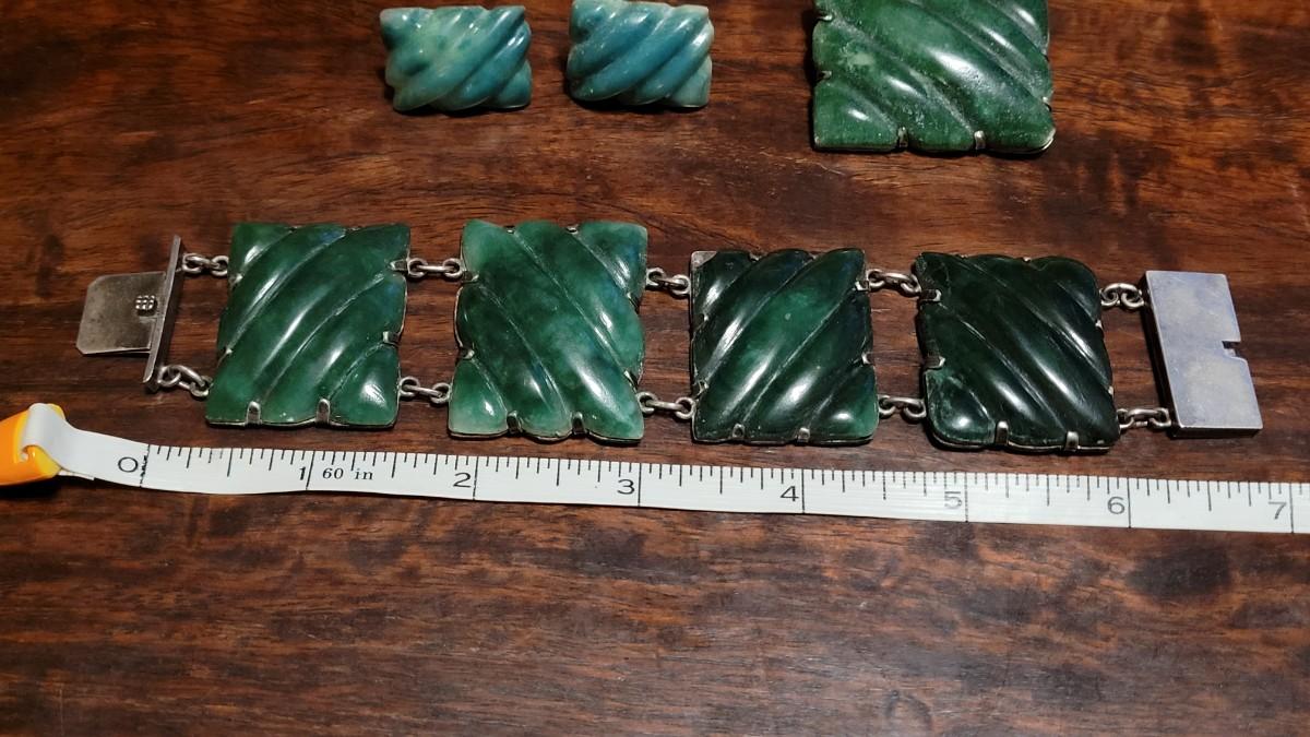 Lot 177: Beautiful Vintage Green Lapis and Sterling Panel Bracelet, Brookhaven and Earrings Set