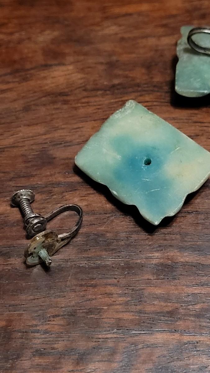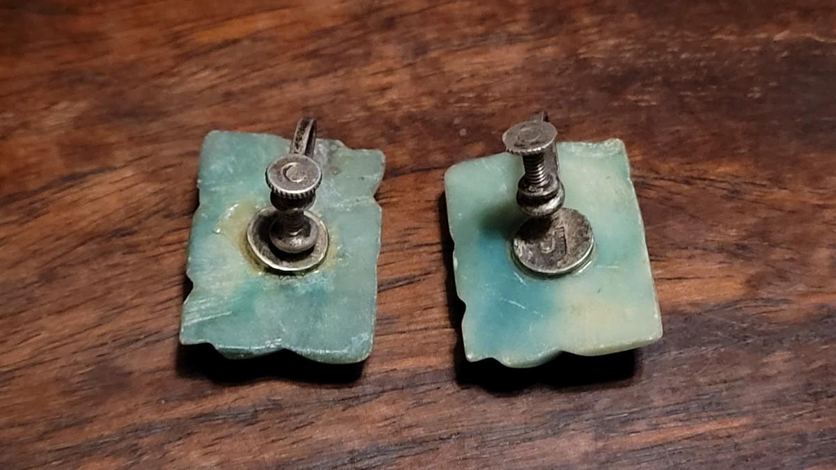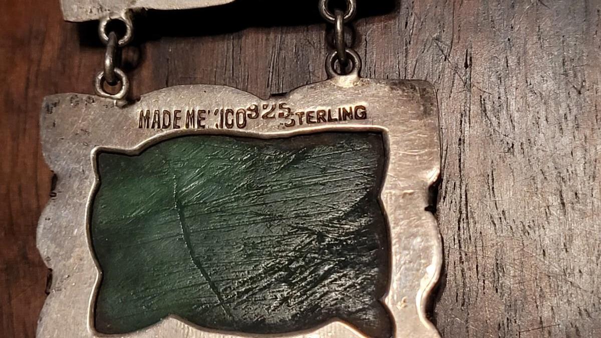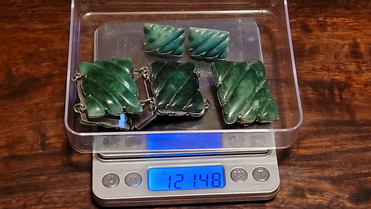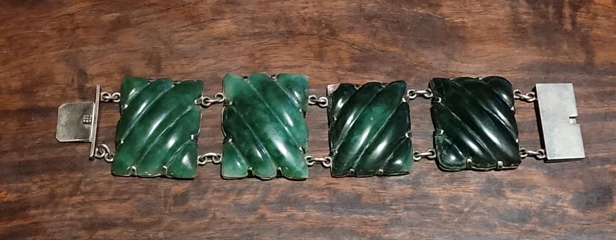 Lot 177: Beautiful Vintage Green Lapis and Sterling Panel Bracelet, Brookhaven and Earrings Set