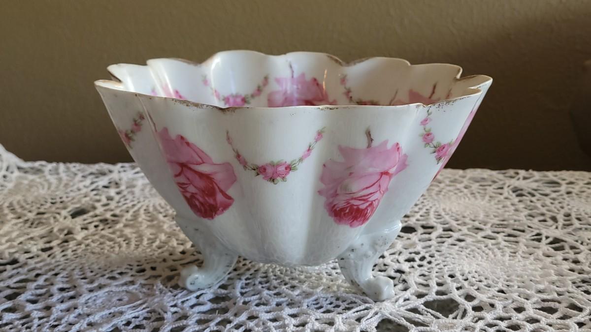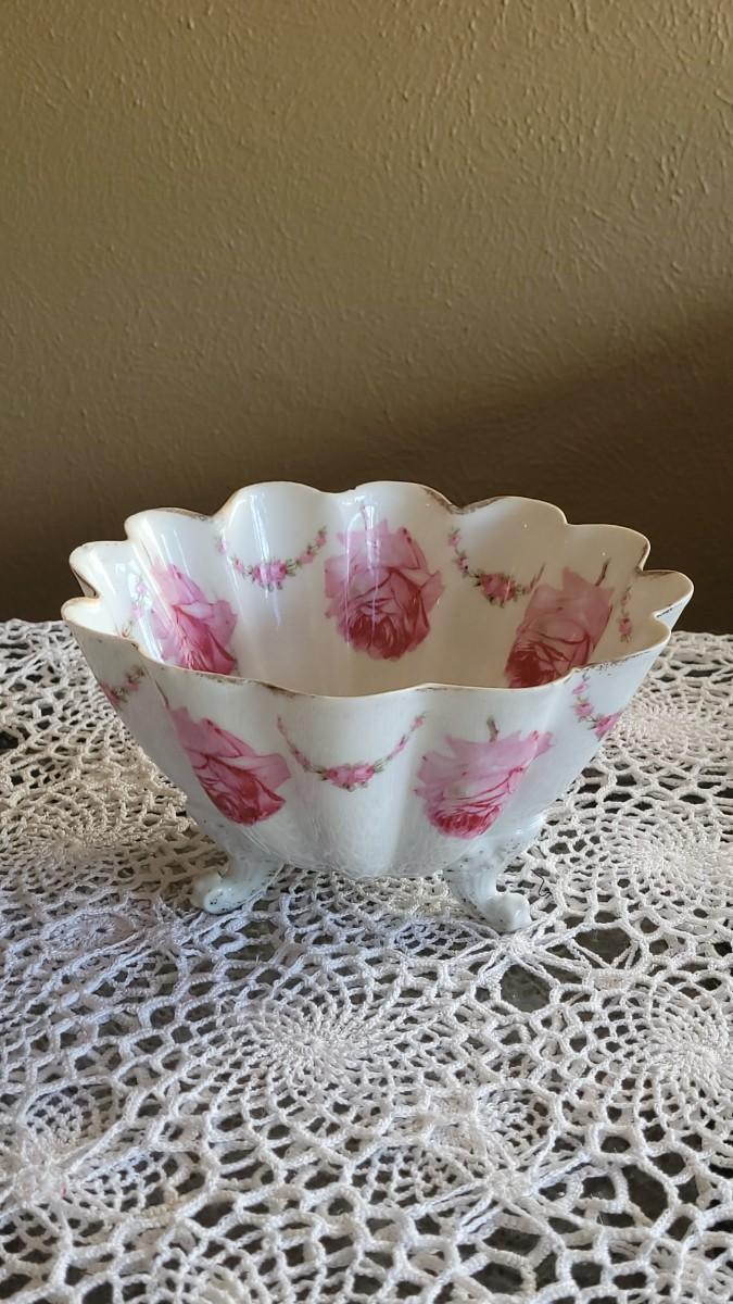 Lot 177: Antique Schwarzburg Handpainted Porcelain Footed Bowl