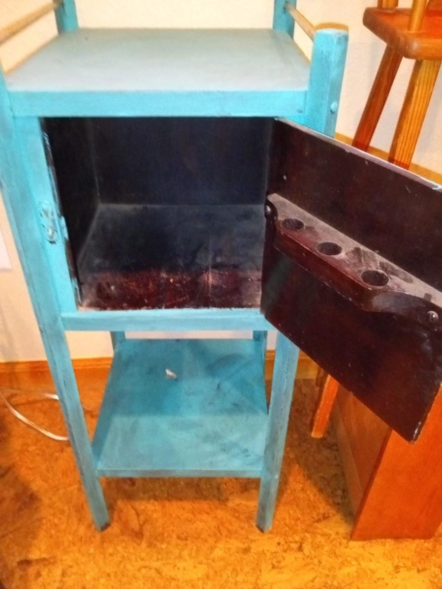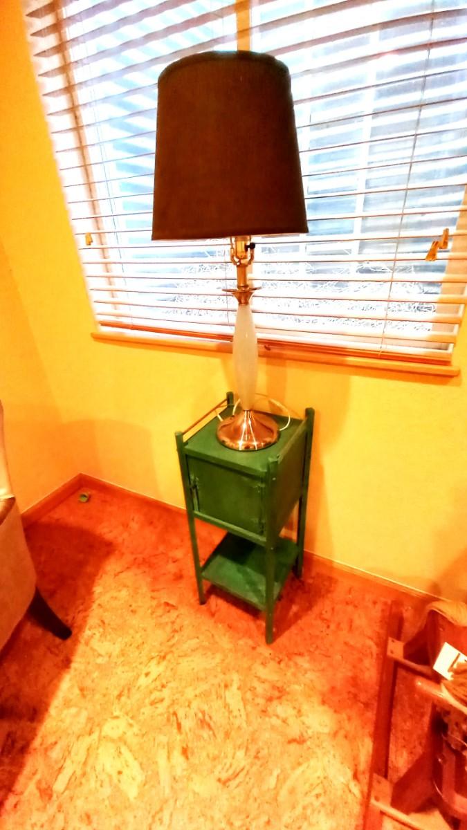 LOT 177 ANTIQUE HUMIDOR TABLE AND A GLASS BASE LAMP (HD)