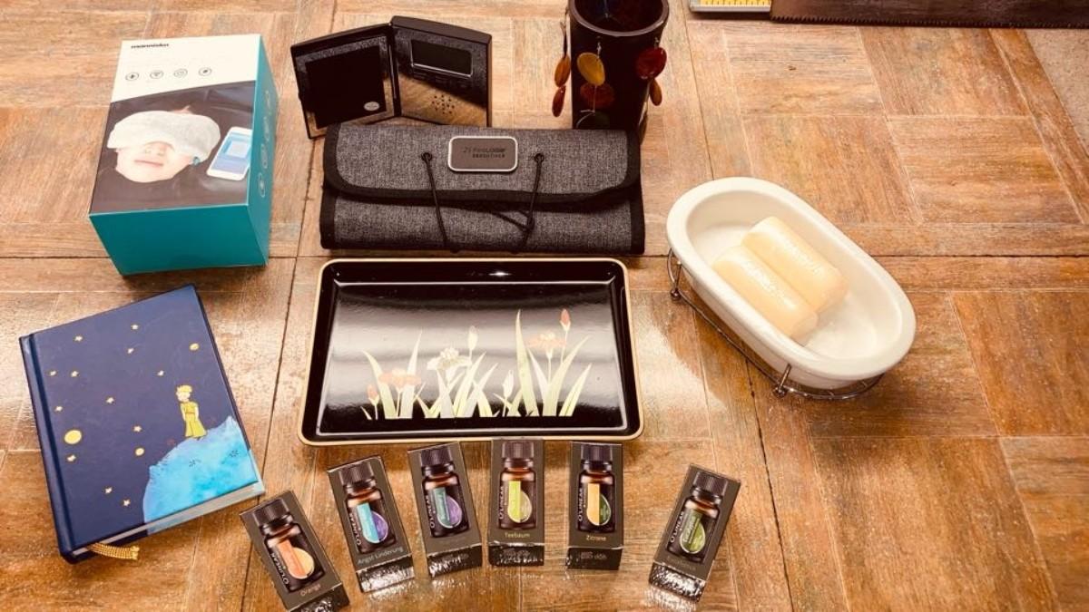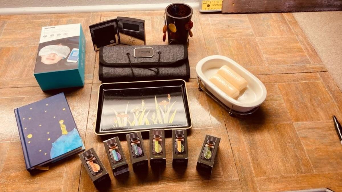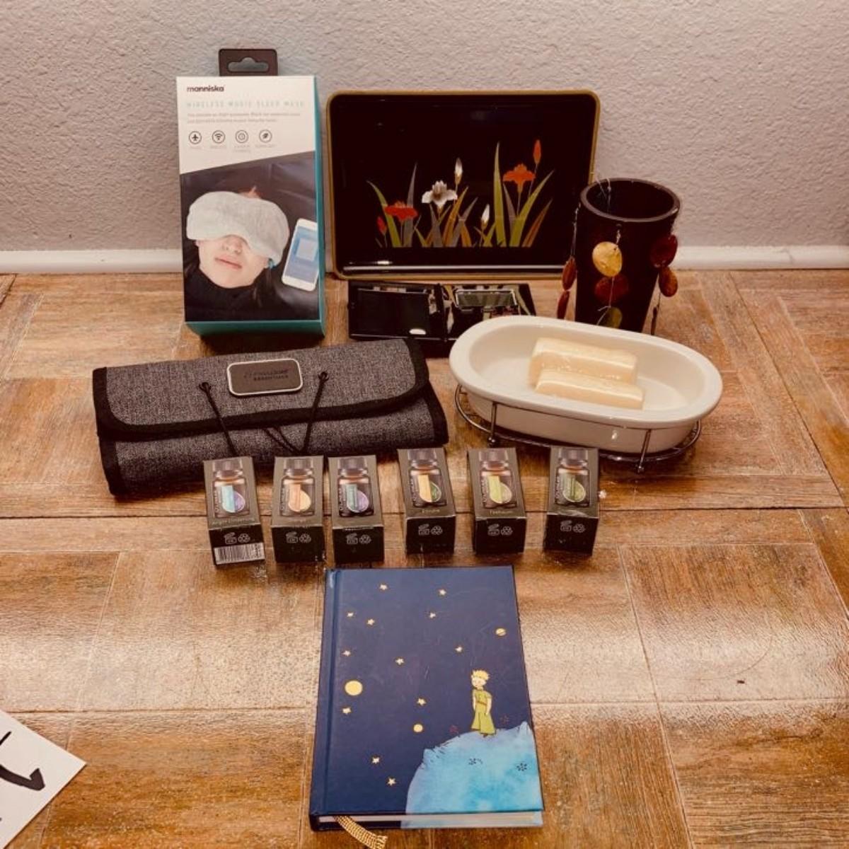 LOT 177 WIRELESS MUSIC SLEEP MASK, JEWELRY TRAVEL BAG, ESSENTIAL OILS