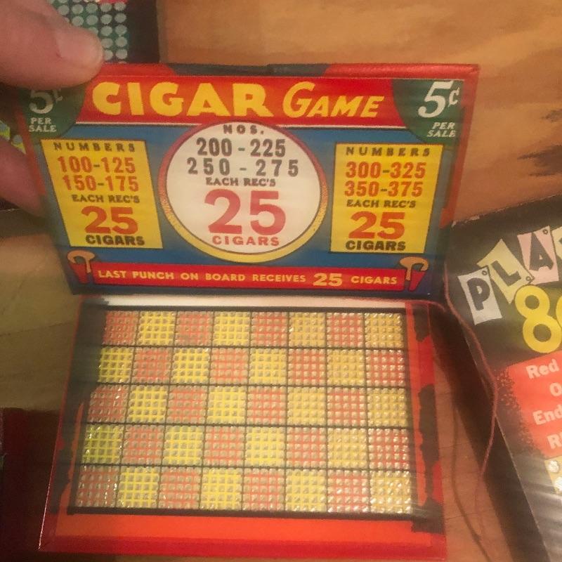 8 boards_: 3 - 6 winner 6, 2 cigar games, play color, Little duke, Win a hula girl lamp: Vintage used condition