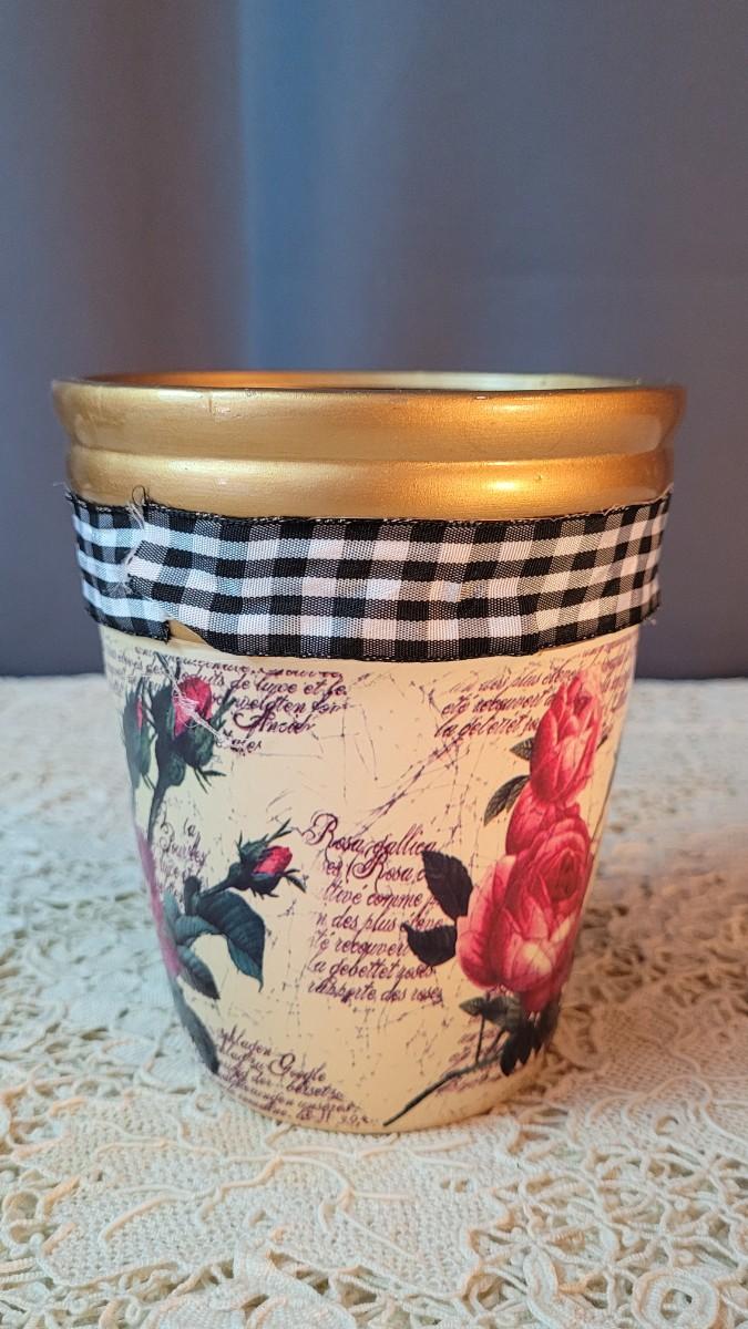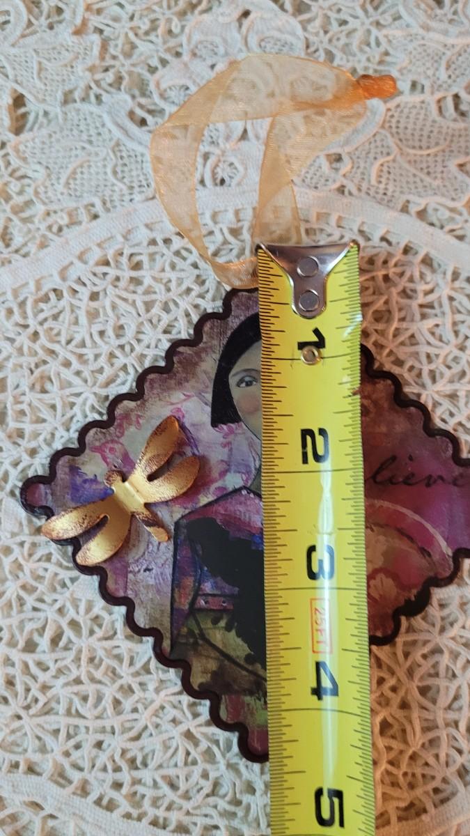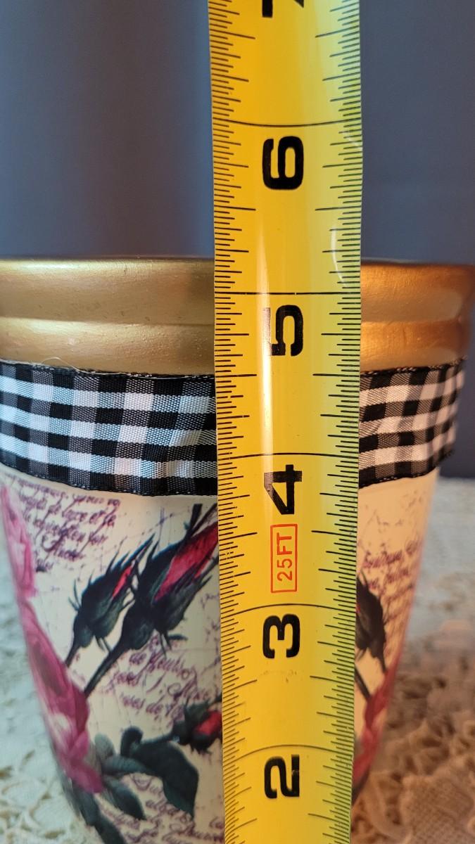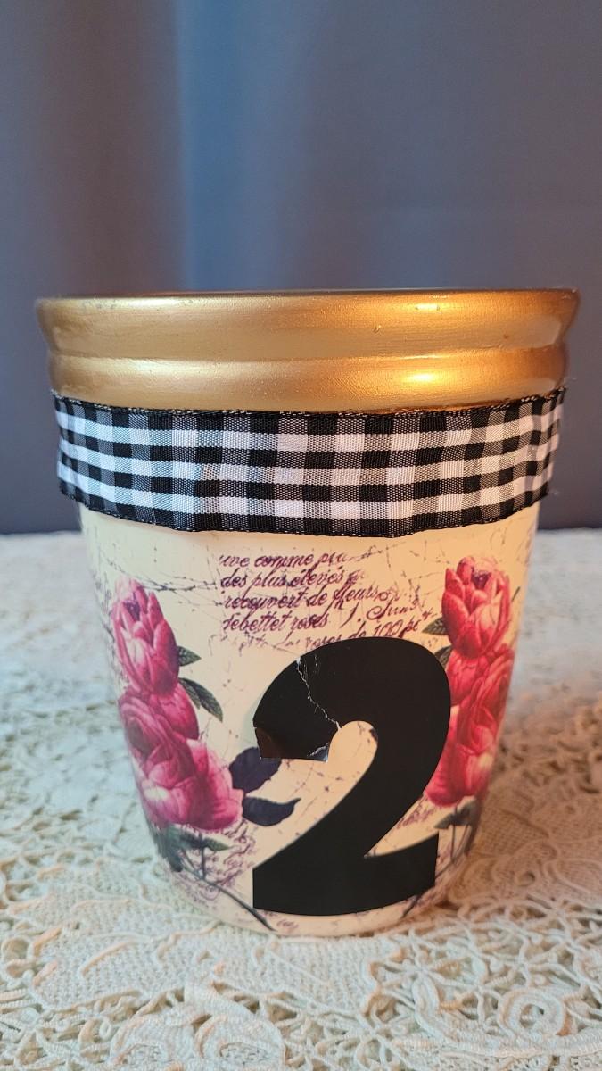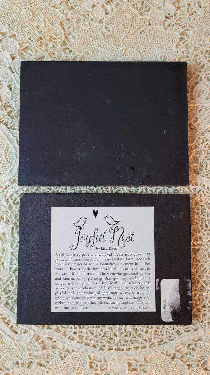 Lot 177: Collaged Flower Pot, Small Metal Ornament and (2) Joyful Nest Plaques