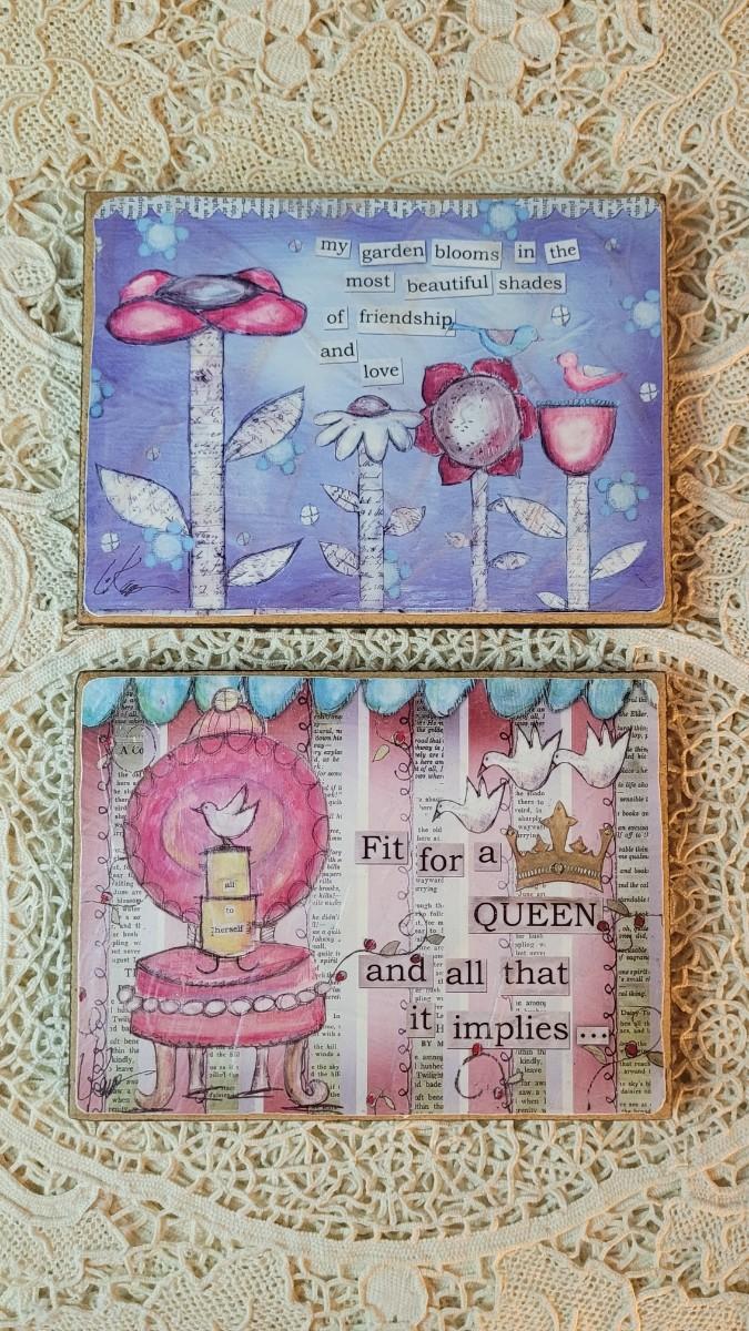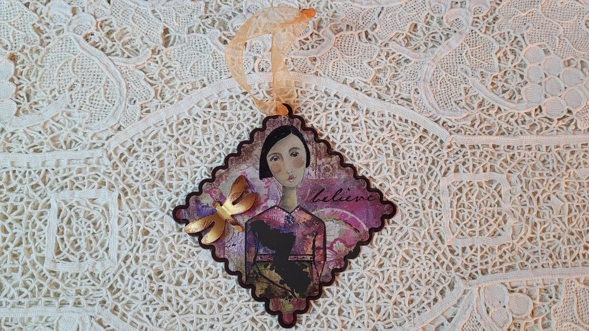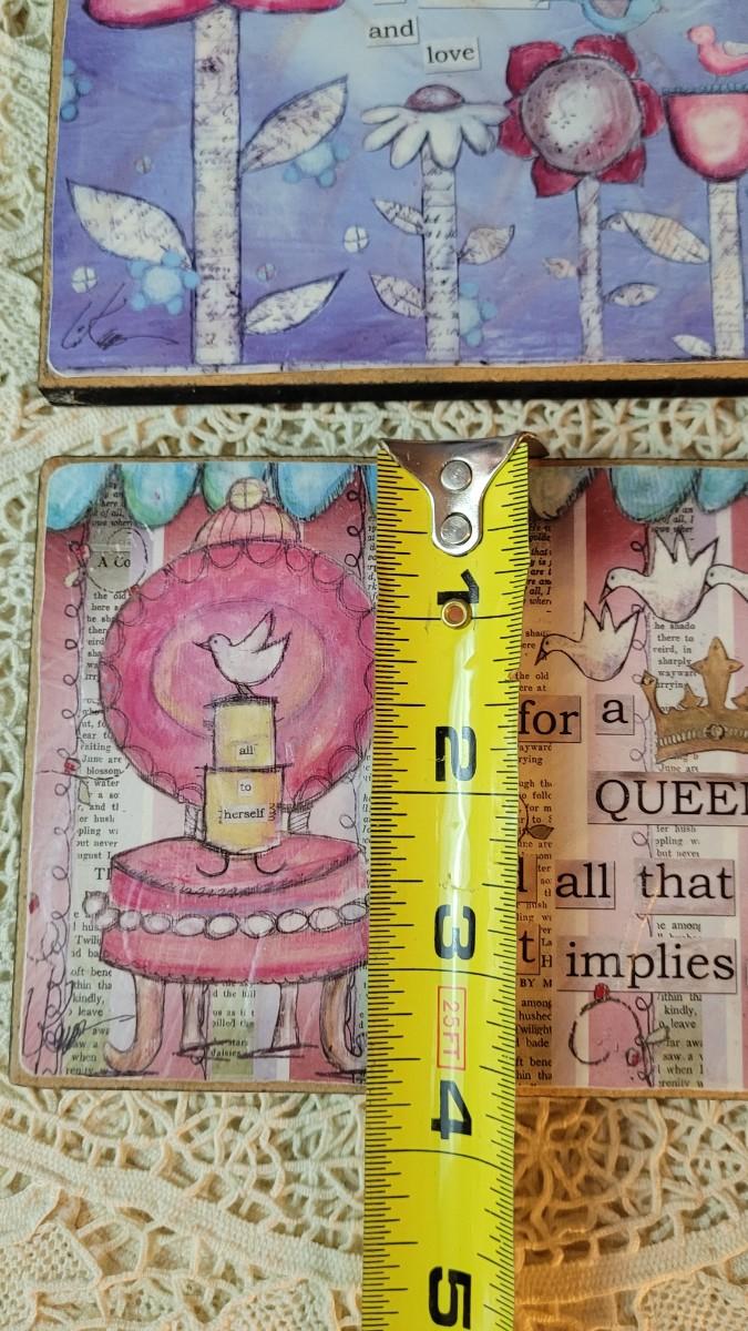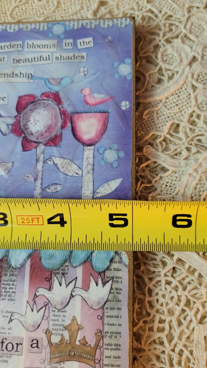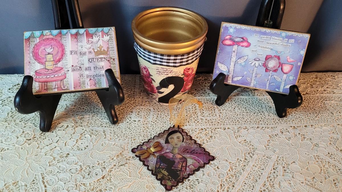 Lot 177: Collaged Flower Pot, Small Metal Ornament and (2) Joyful Nest Plaques