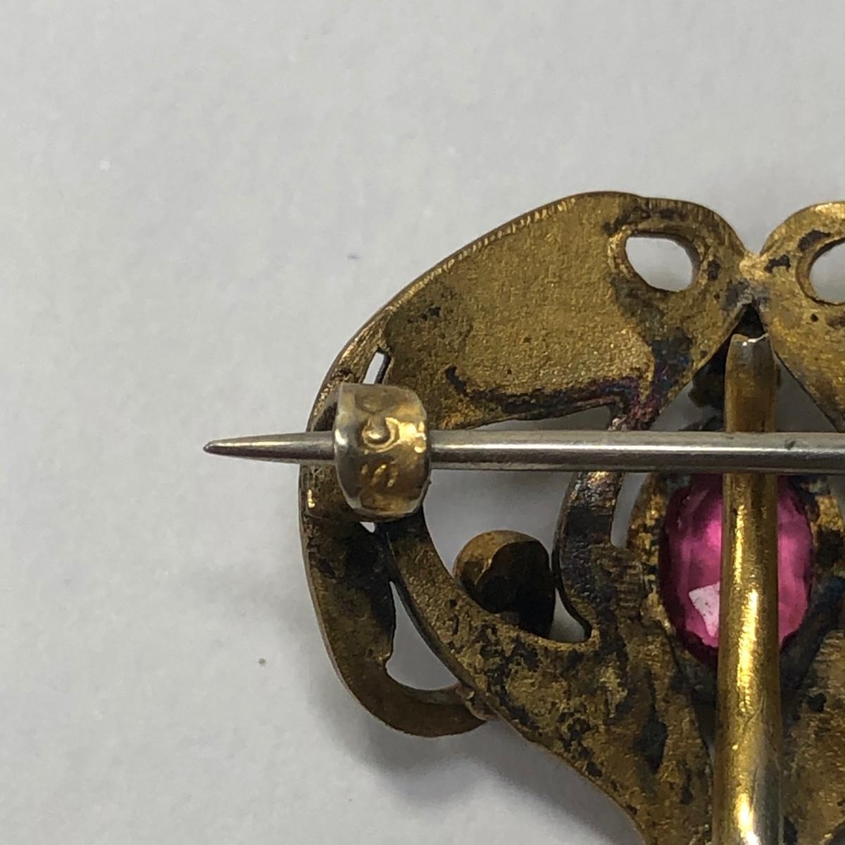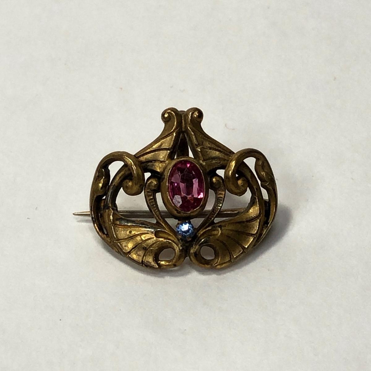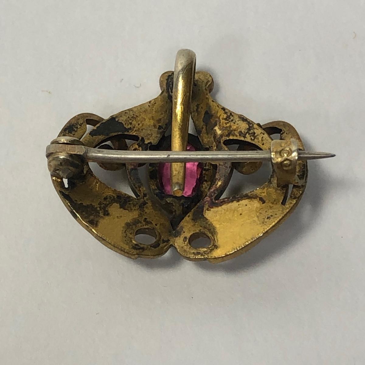 LOT 177: Victorian Watch Pin w/ Gemstones Marked PSCO