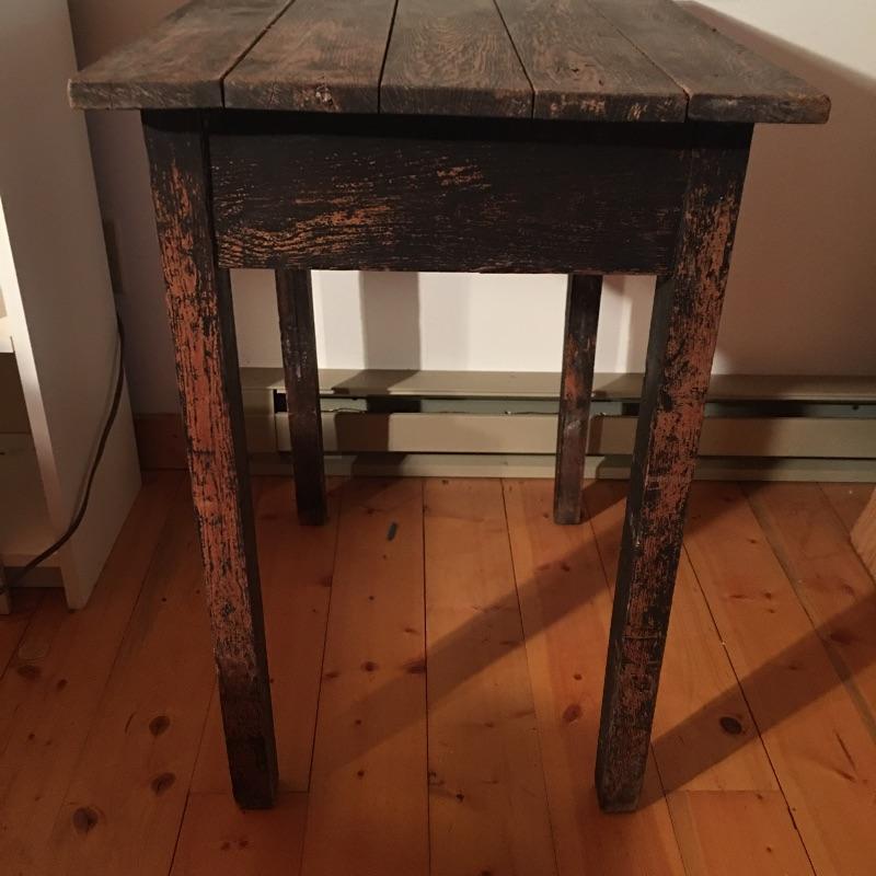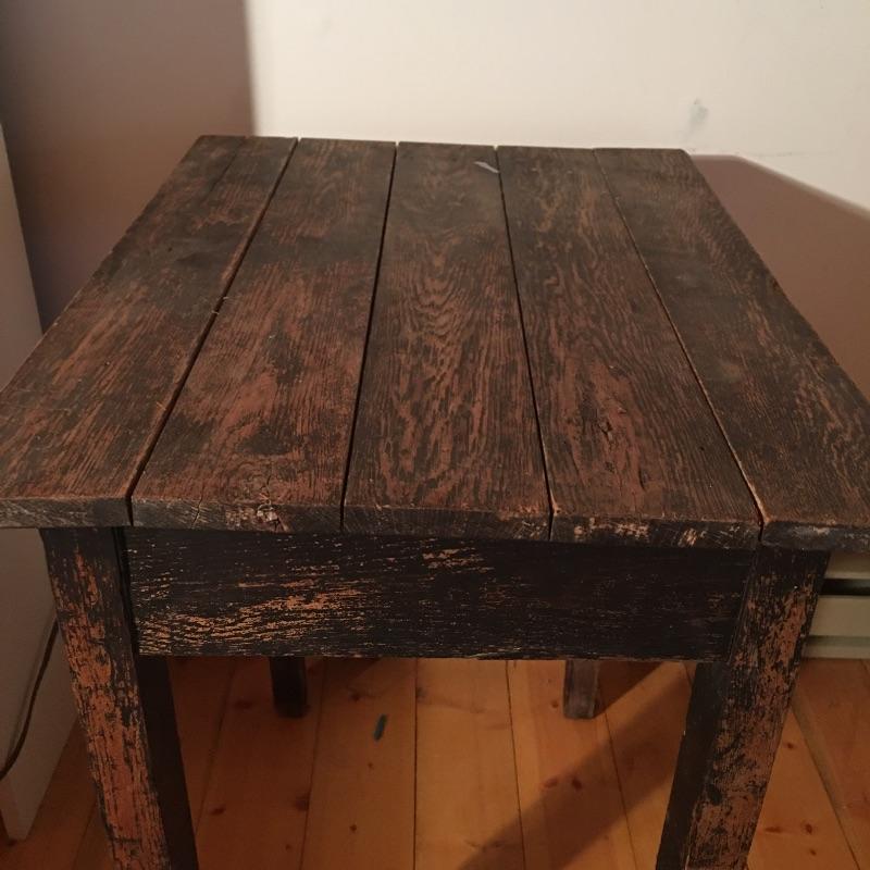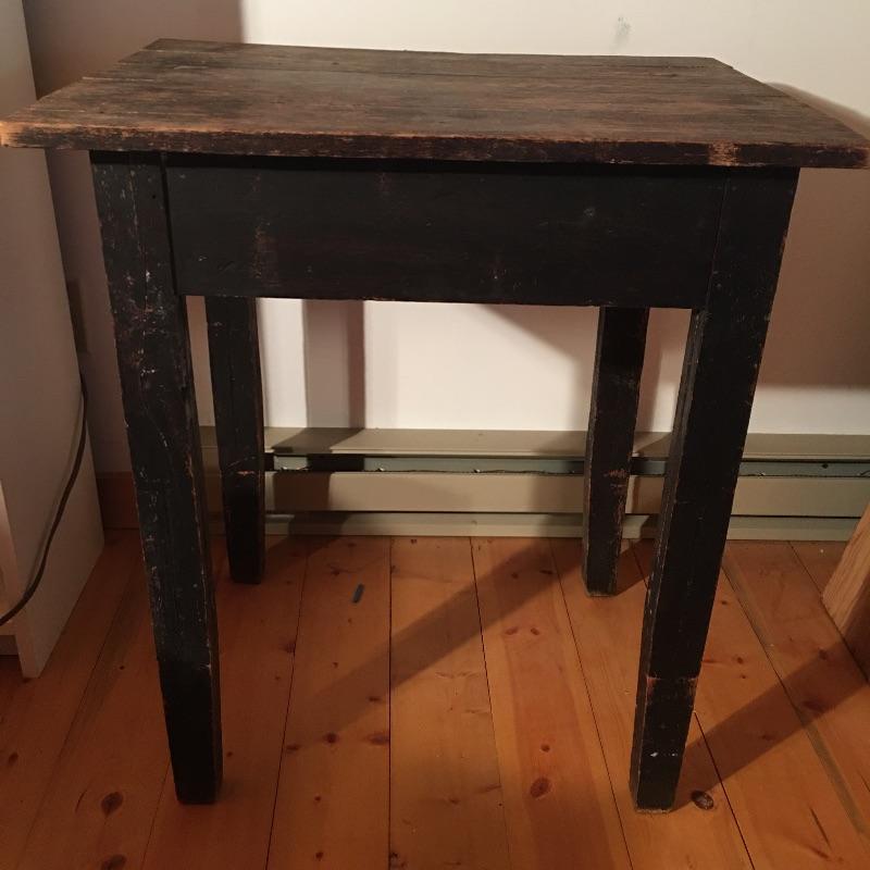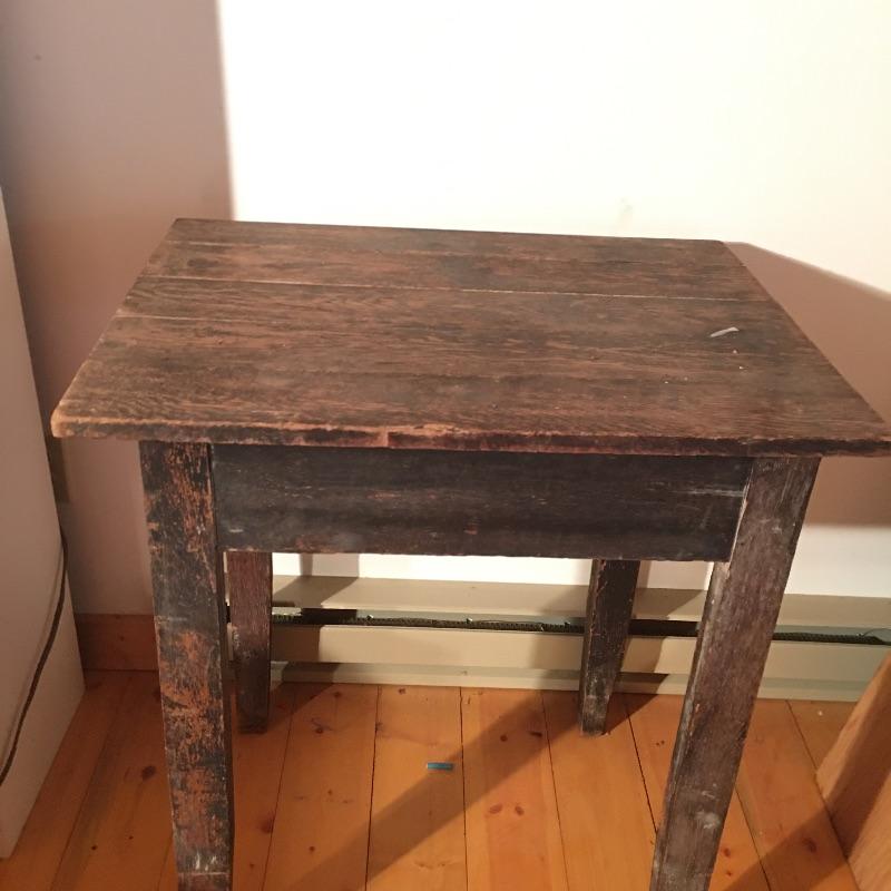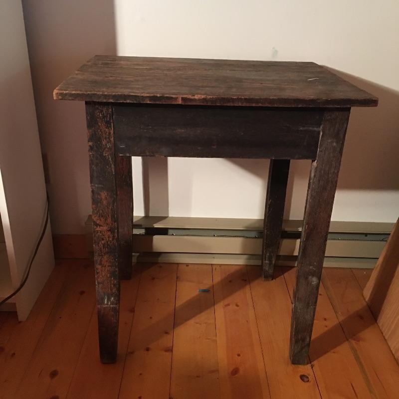 This bold antique wooden table with its lovely patina is as beautiful as it is simple. Don’t miss out on this unique table that will look great in your home. All wood. Table measures 19.5” x 25.5” x 29.25”. Table has scratches and nicks that just adds to its charm, see pictures.