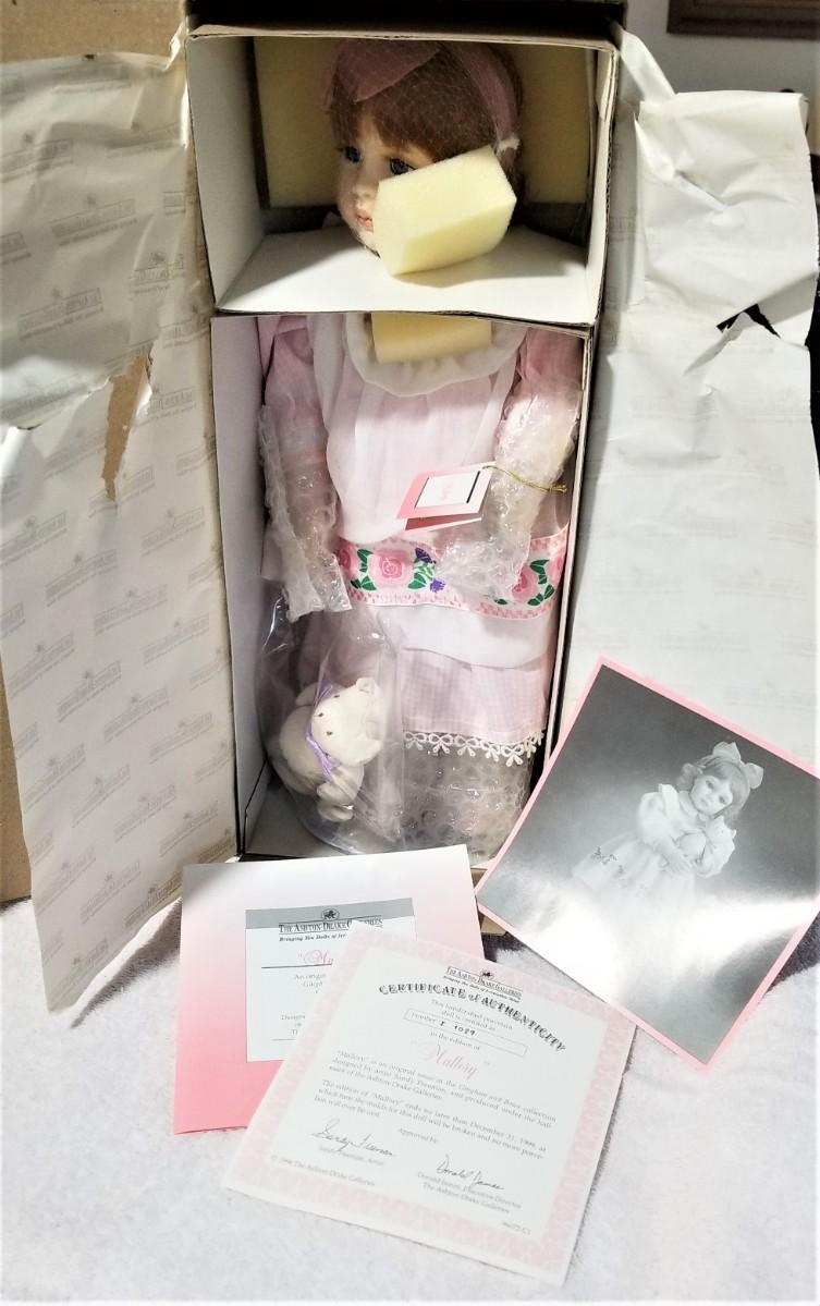 Lot #177 Ashton Drake Collectible Bisque Porcelain Doll - new in box - "Mallory"