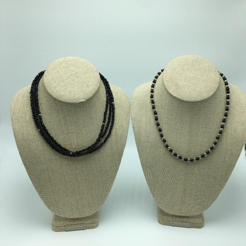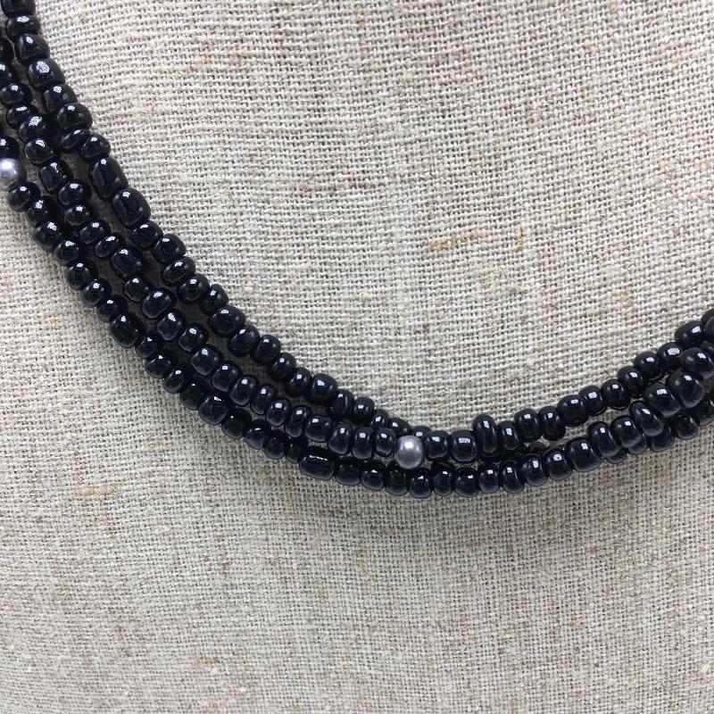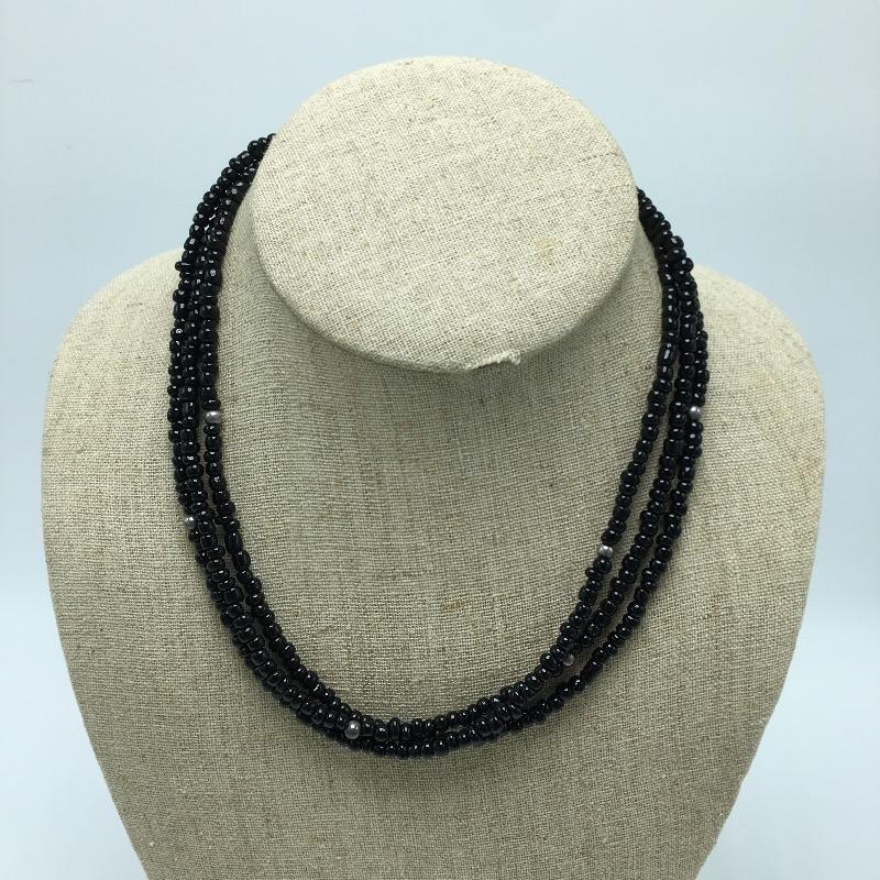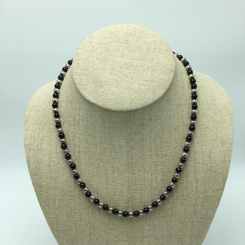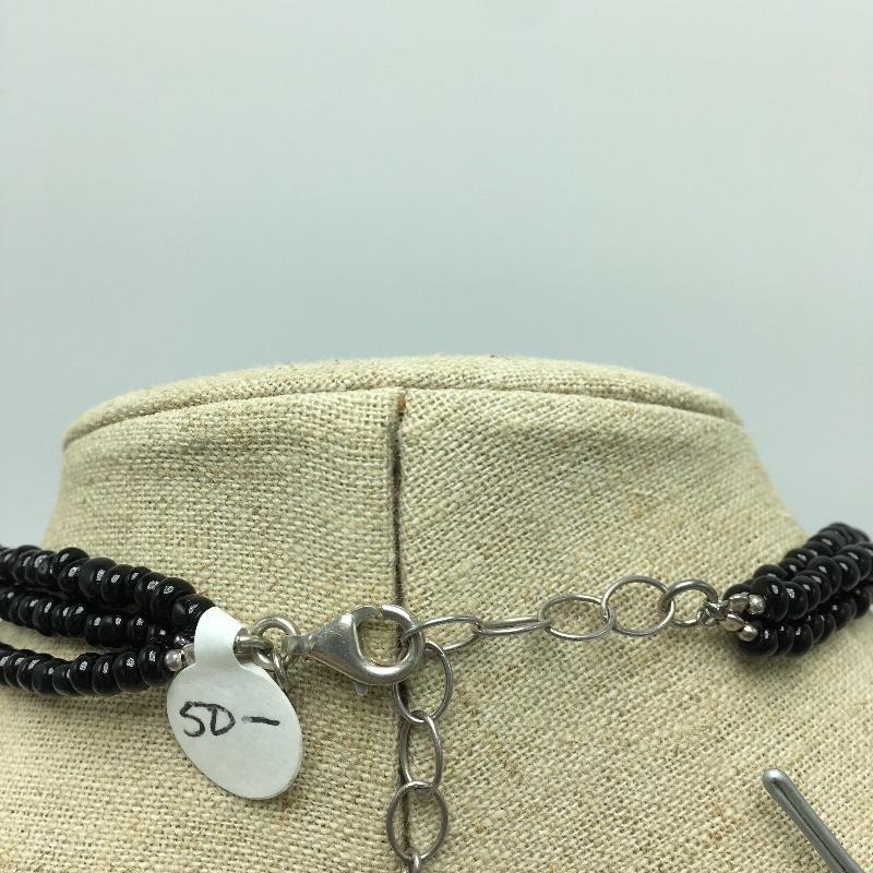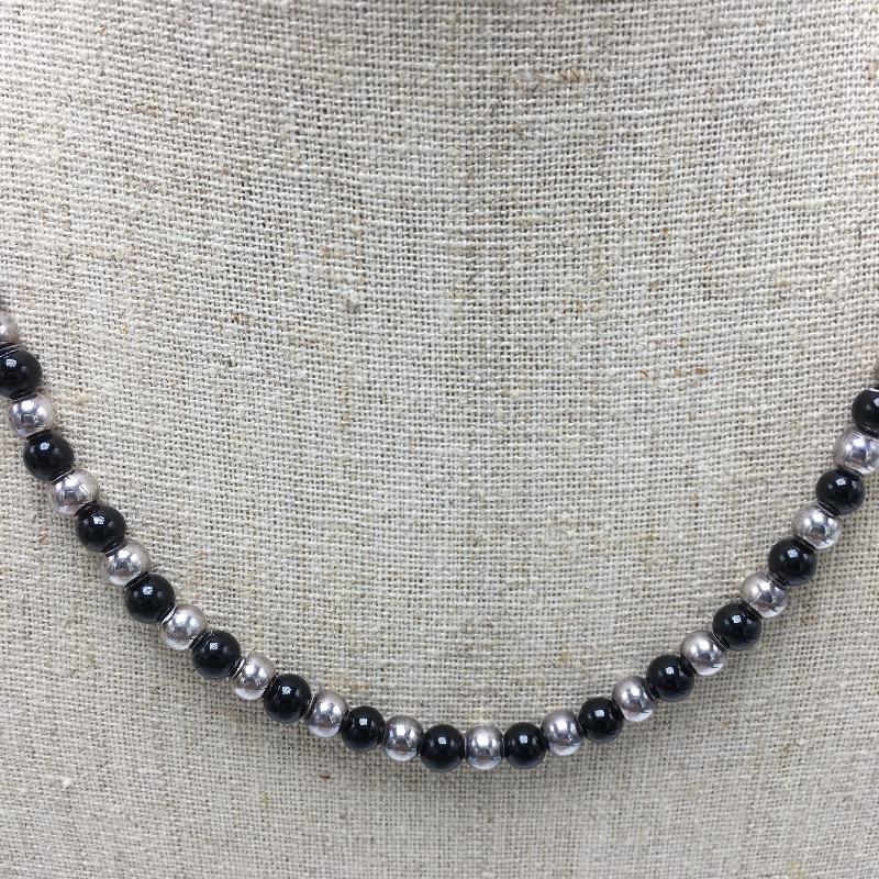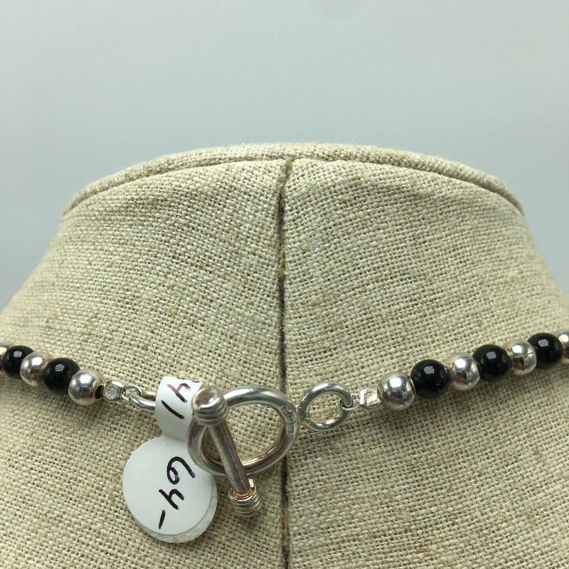 Silpada 3 strands of black glass beads and sterling silver accent beads make up this 16" long necklace with a 2" extender. Then add a black onyx and sterling silver beads with a sterling silver toggle clasp and measures 18" long to be ready for a black formal affair.