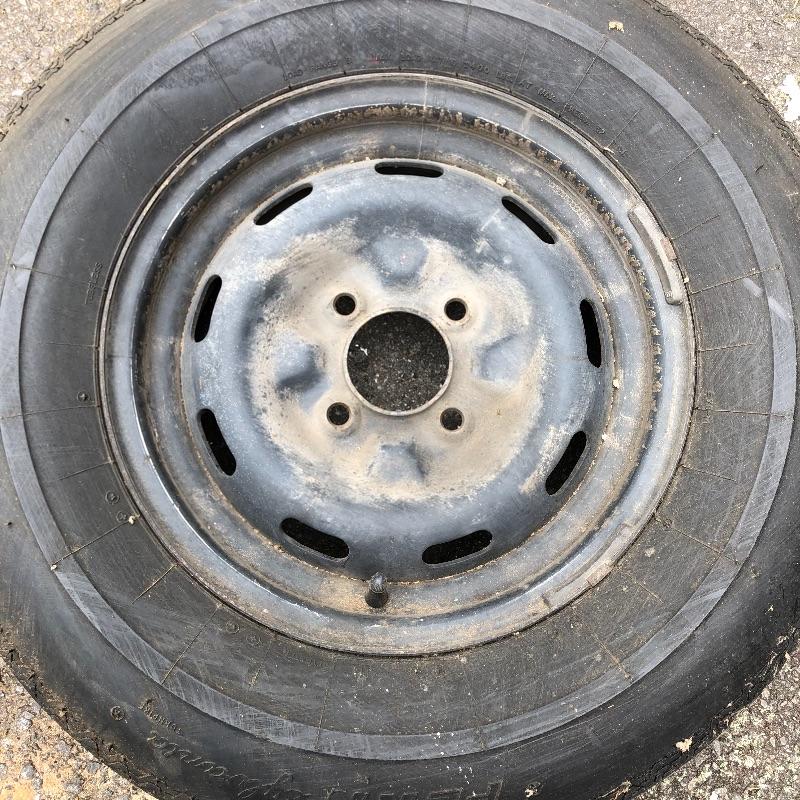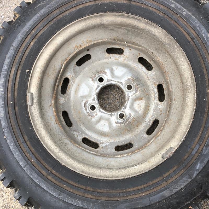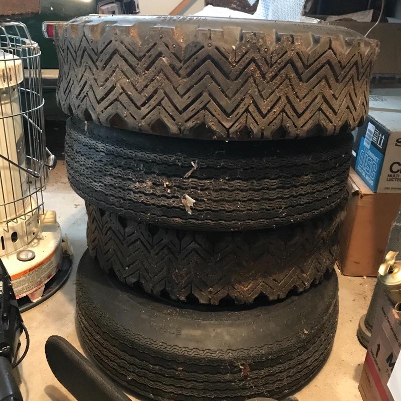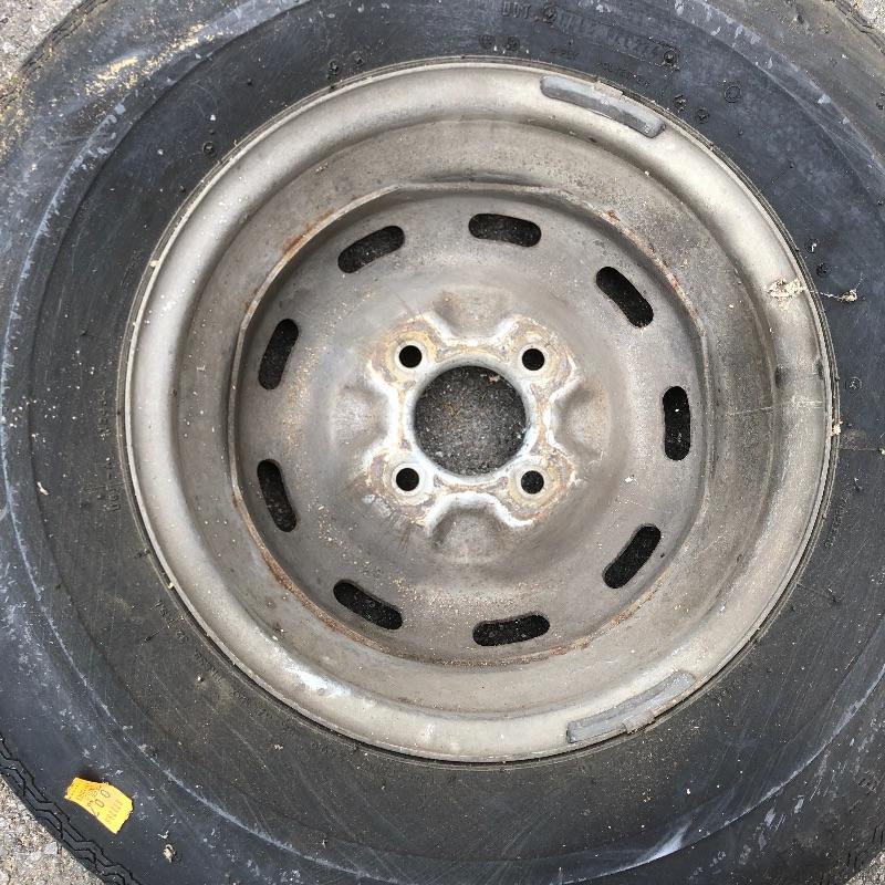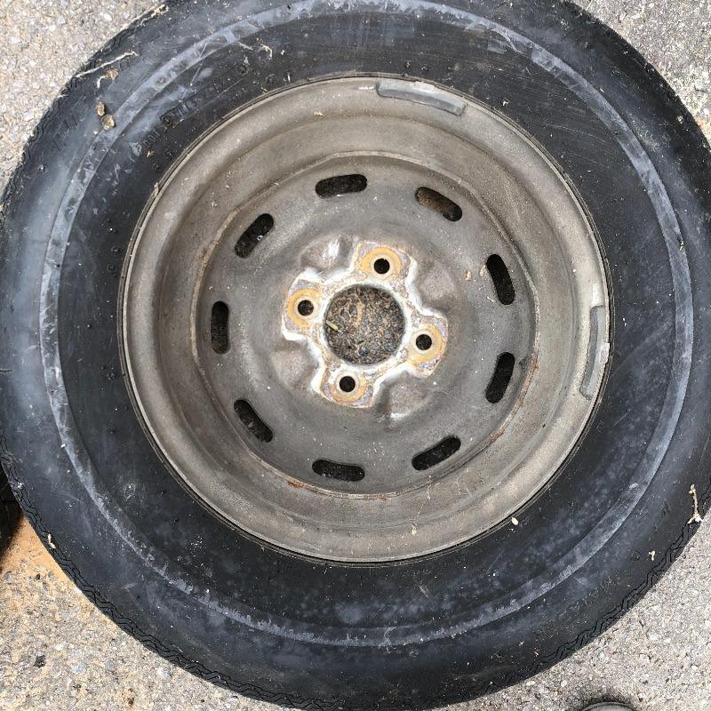For the Datsun purist are these four Topy rims that are date coded 2-71 that appear to be rust free. Vintage tires are mounted on rims, but are all flat.