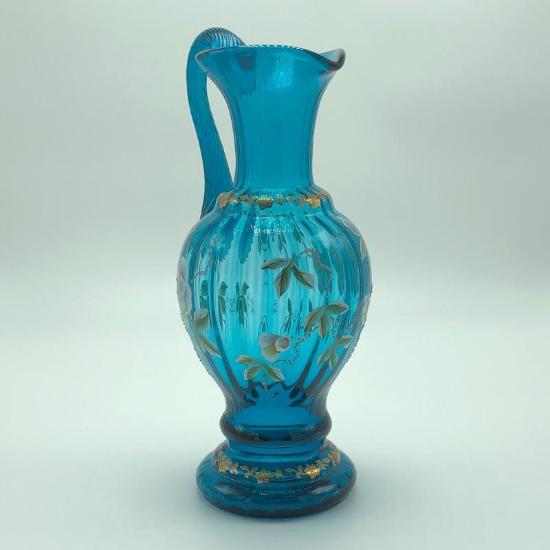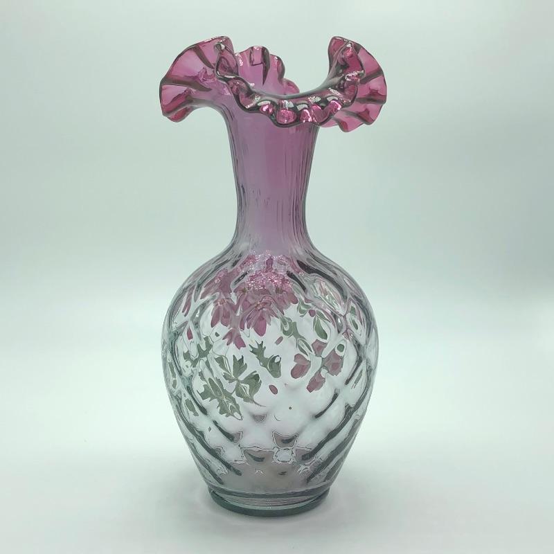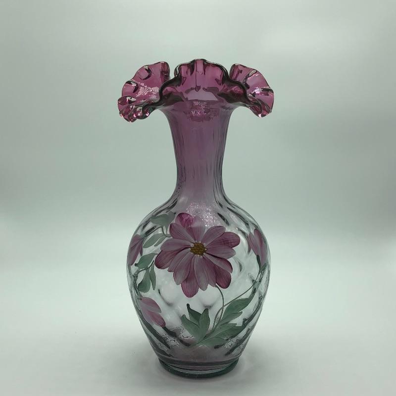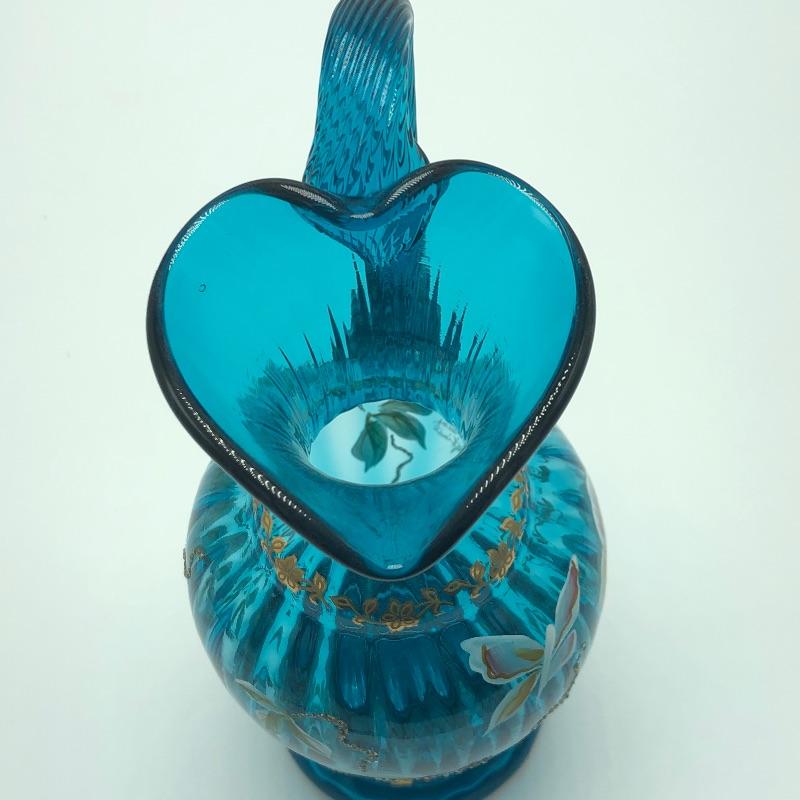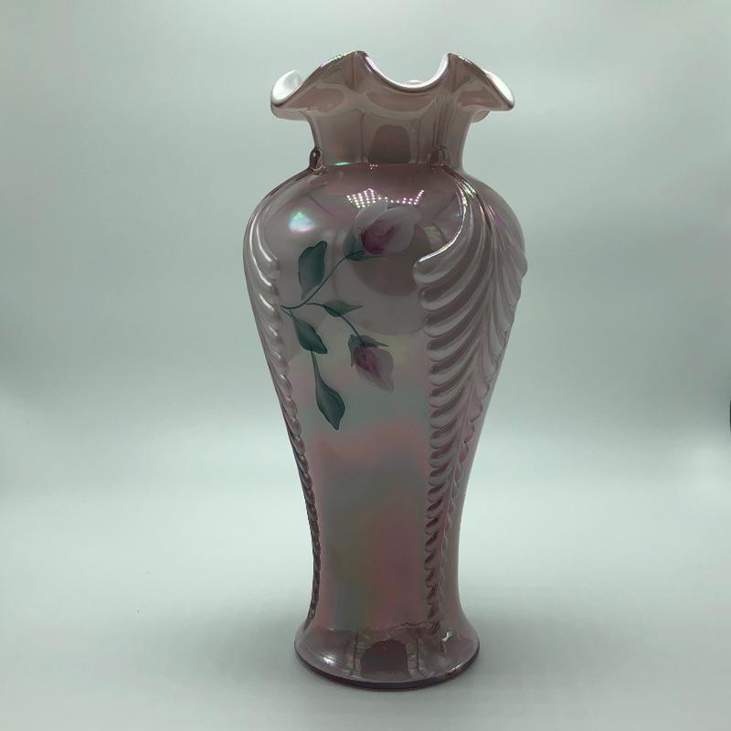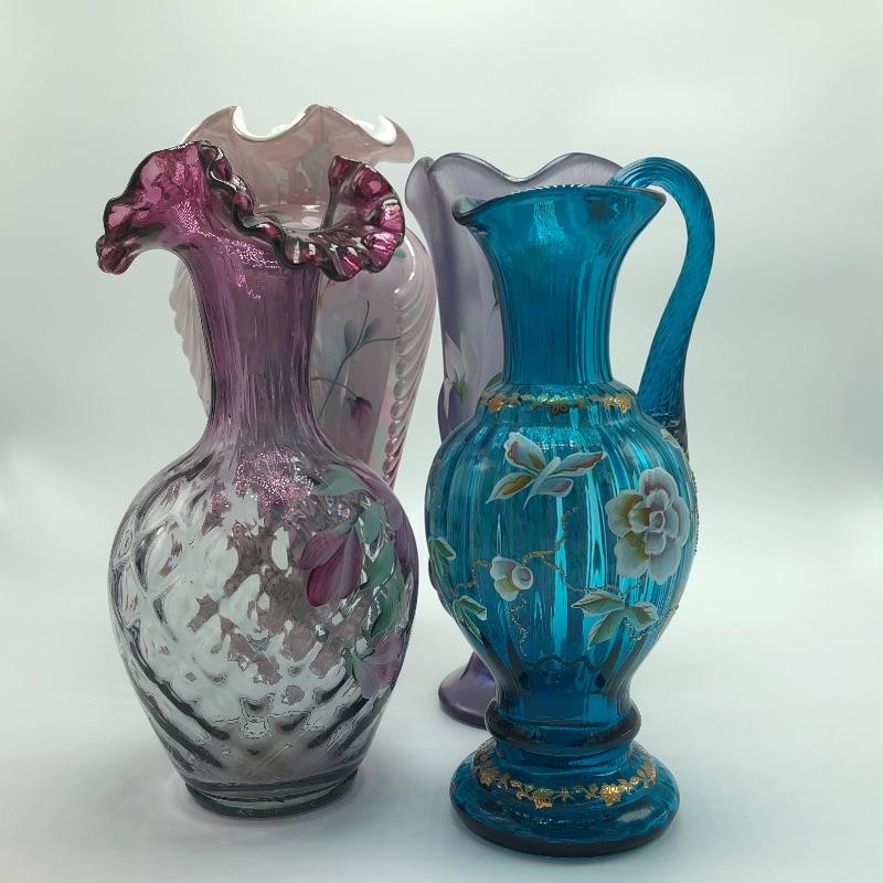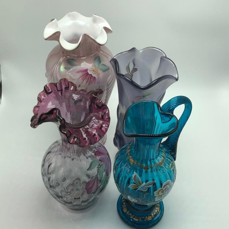 4 amazing hand painted Fenton glass Vases/pitcher.