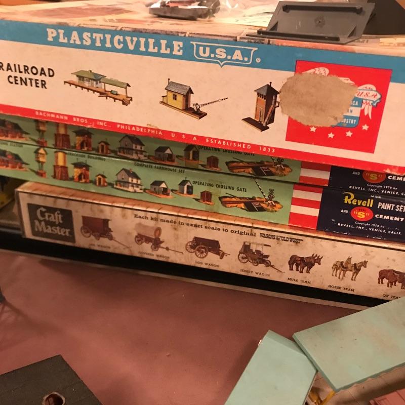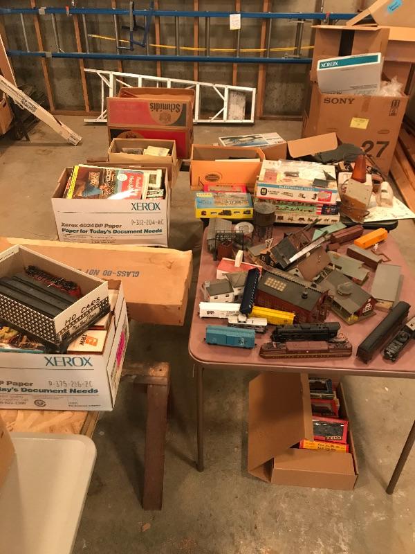 This massive lot includes all the antique train parts you could possibly need including tracks, cars, engines, buildings, electrical components and more. Some train cars are still in boxes. Tyco, Plasticville, Craft Master, Revell, Atlas, and more. See pics. Local pickup only.