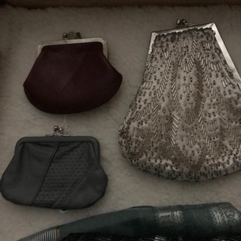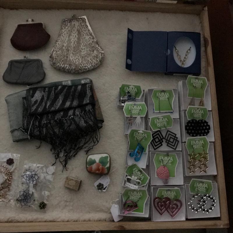 Lot includes a variety of purses and fun vintage jewelry. See pics. Also includes scarves and two small metal boxes. Shipping available or local pickup in Maggie Valley, NC.