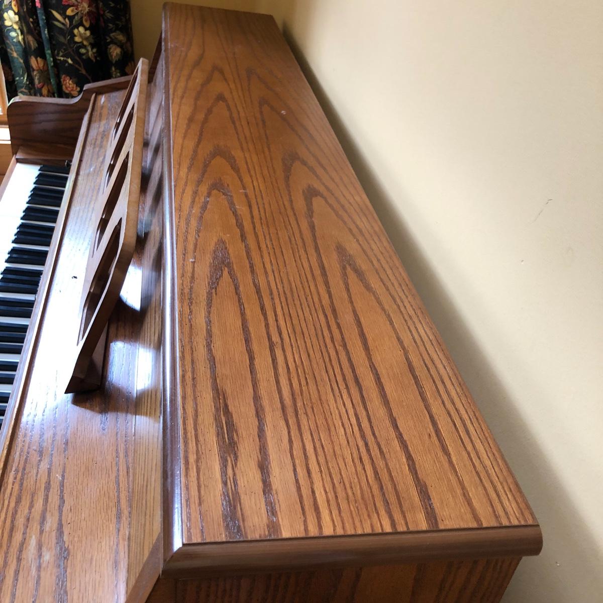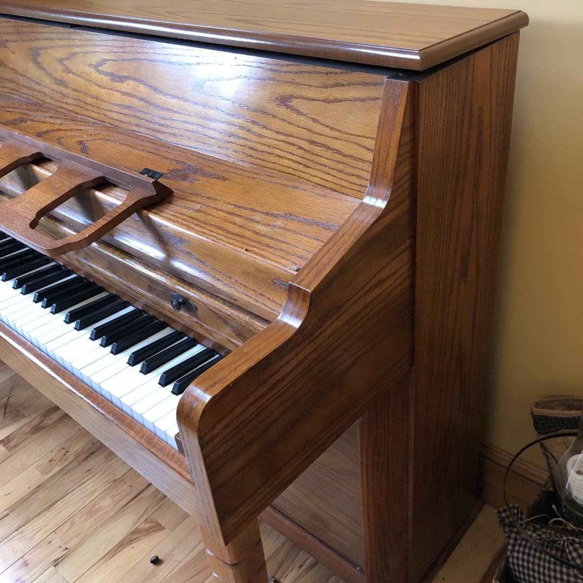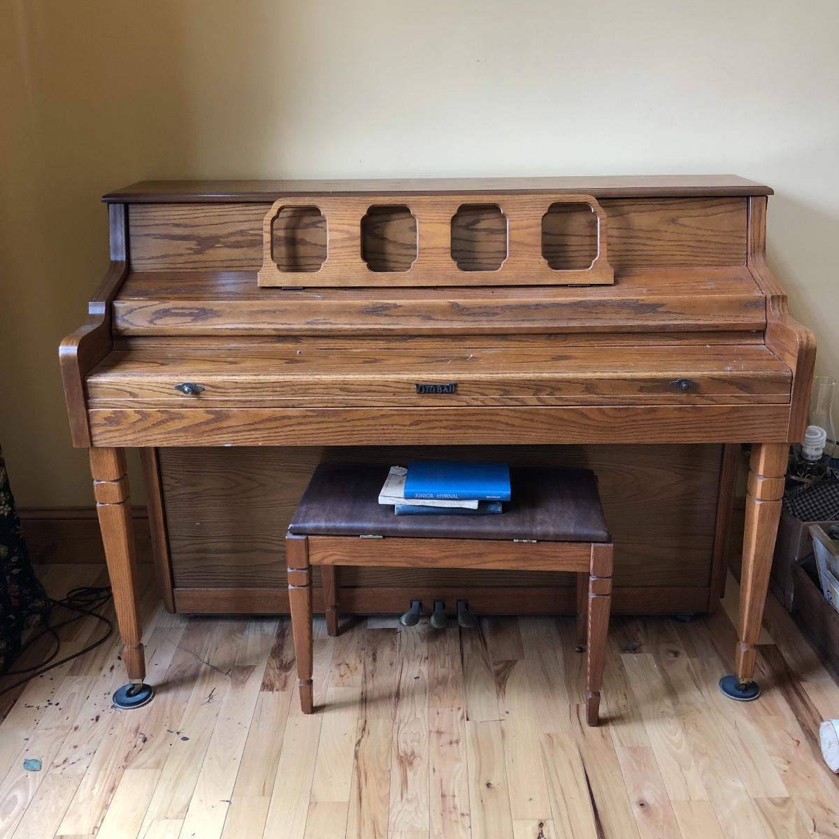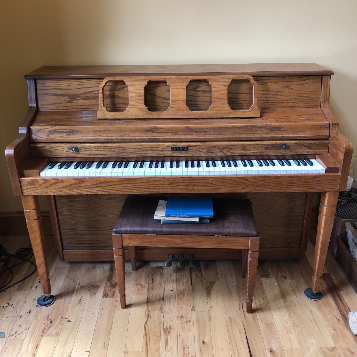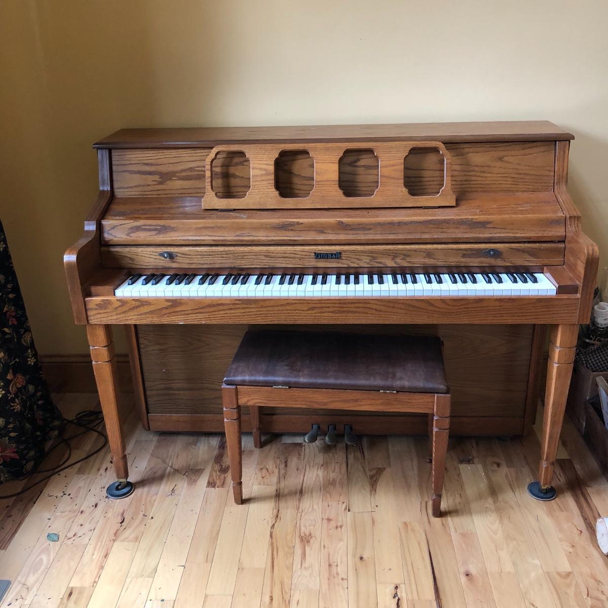 Get back to the good old days with this upright Kimball piano, stool and hymnals.