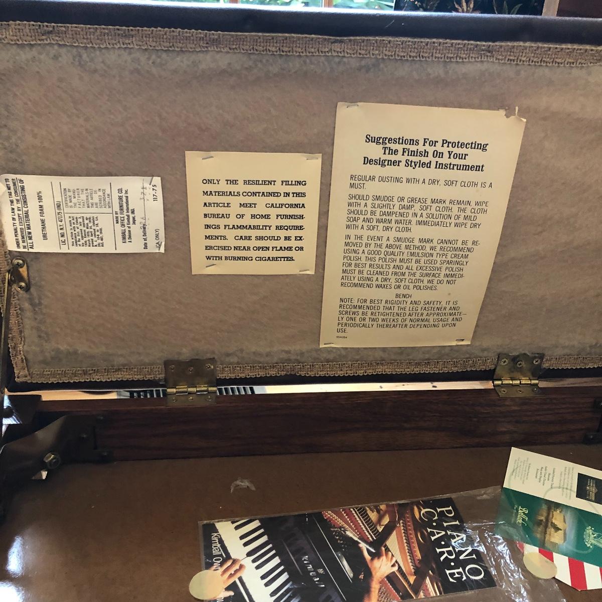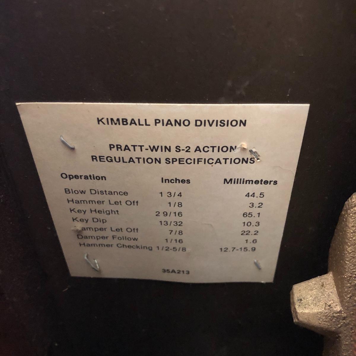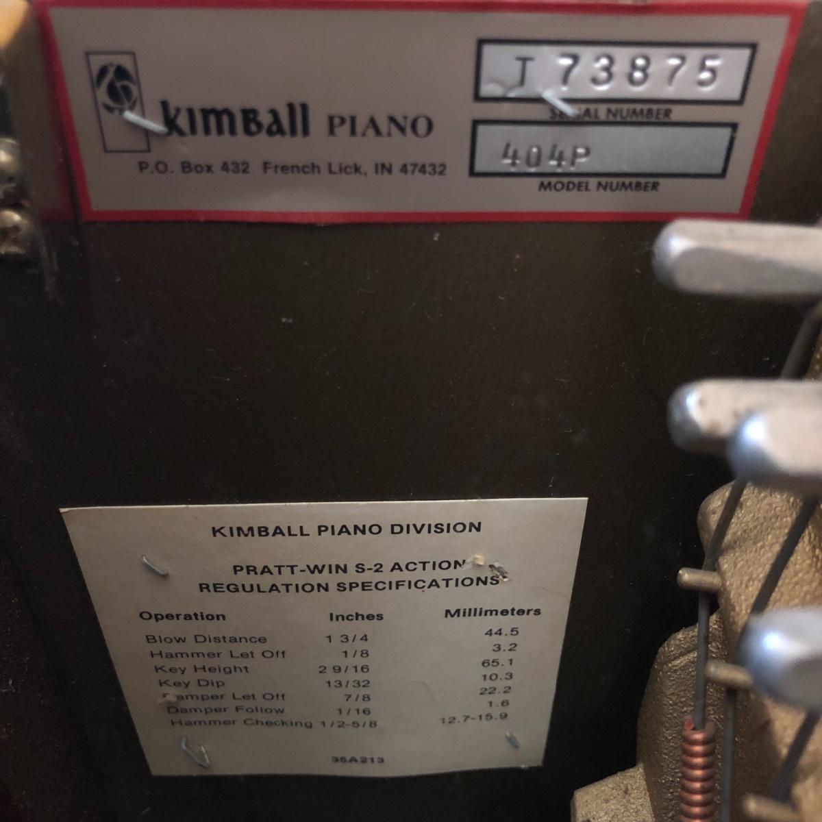 This Kimball piano is serial# T 73875; it has a few scratches and nicks yet, appears in good shape and played when tested. Keys all struck when tested.