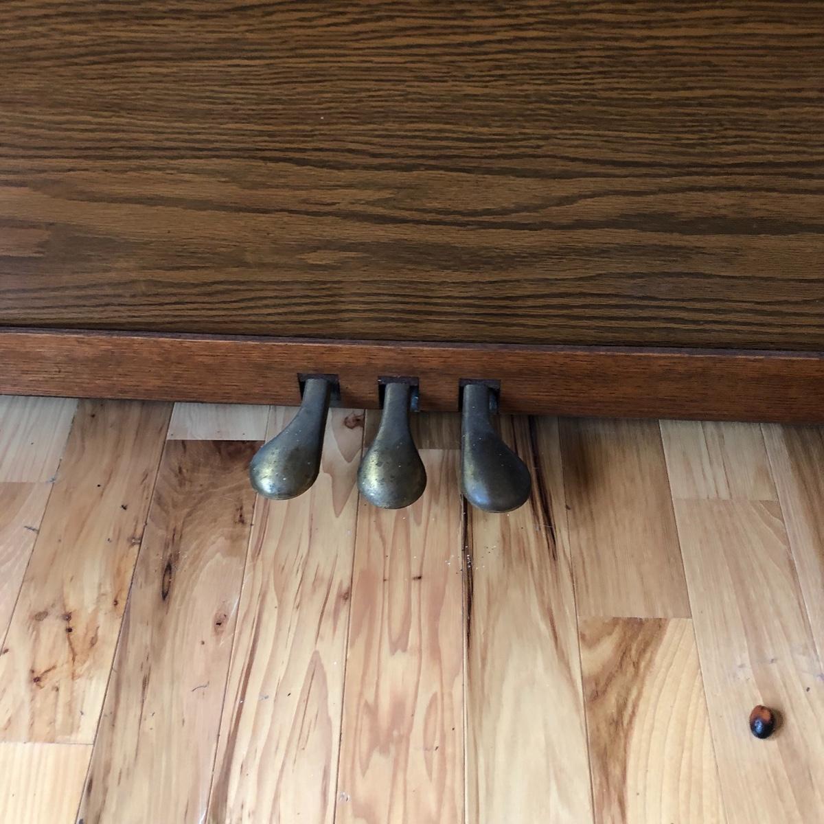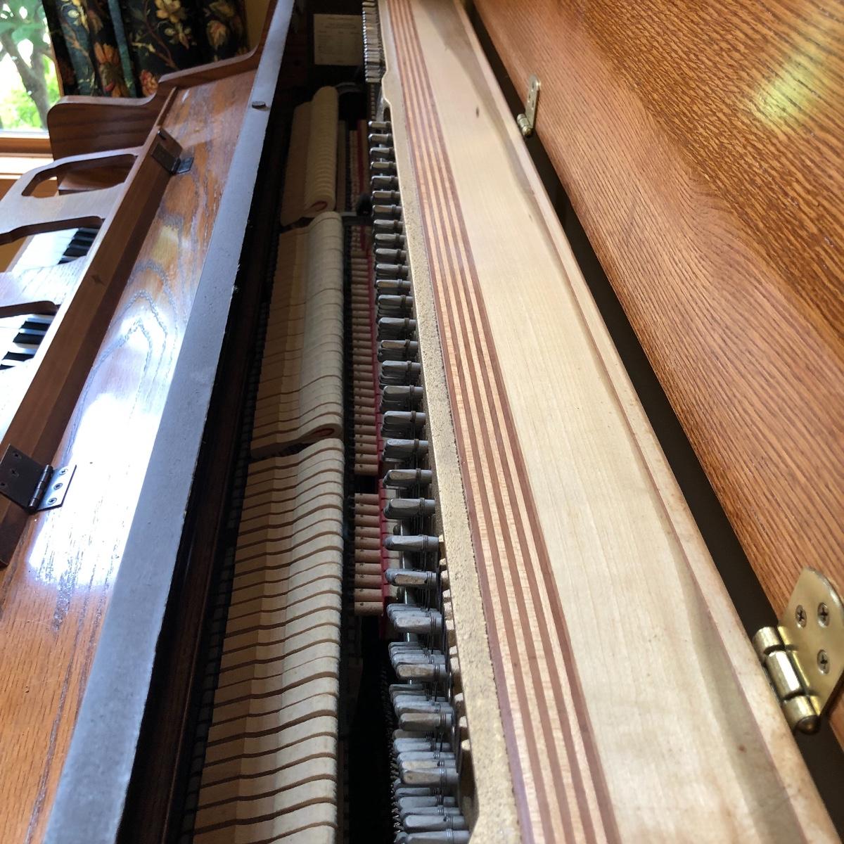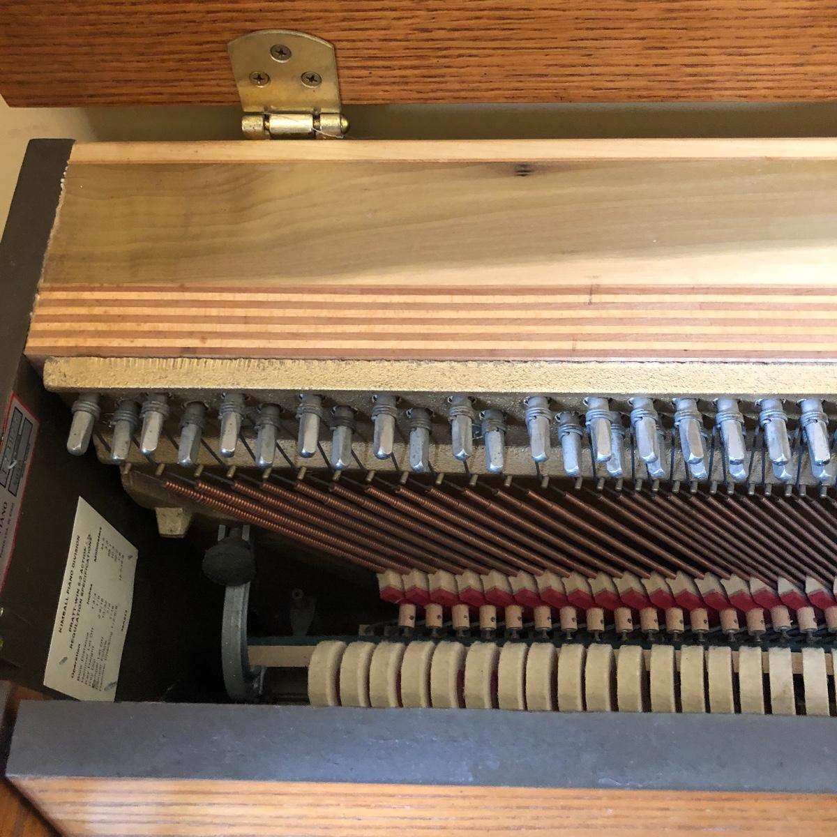 This Kimball piano is serial# T 73875; it has a few scratches and nicks yet, appears in good shape and played when tested. Keys all struck when tested.