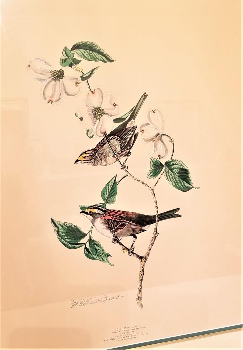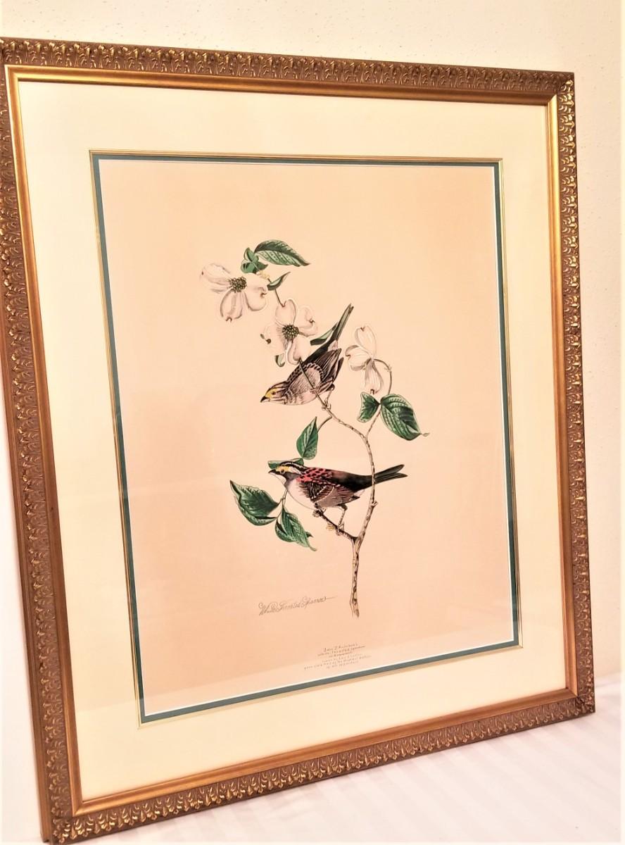 Lois J. Lester hand colored bird print "White Throated Sparrow" No. 8 in the John James Audubon Elephant Edition (London, 1827-38). Nicely framed. 25.5" x 29.5". Another Lois Lester print is in an earlier lot.