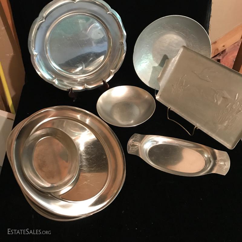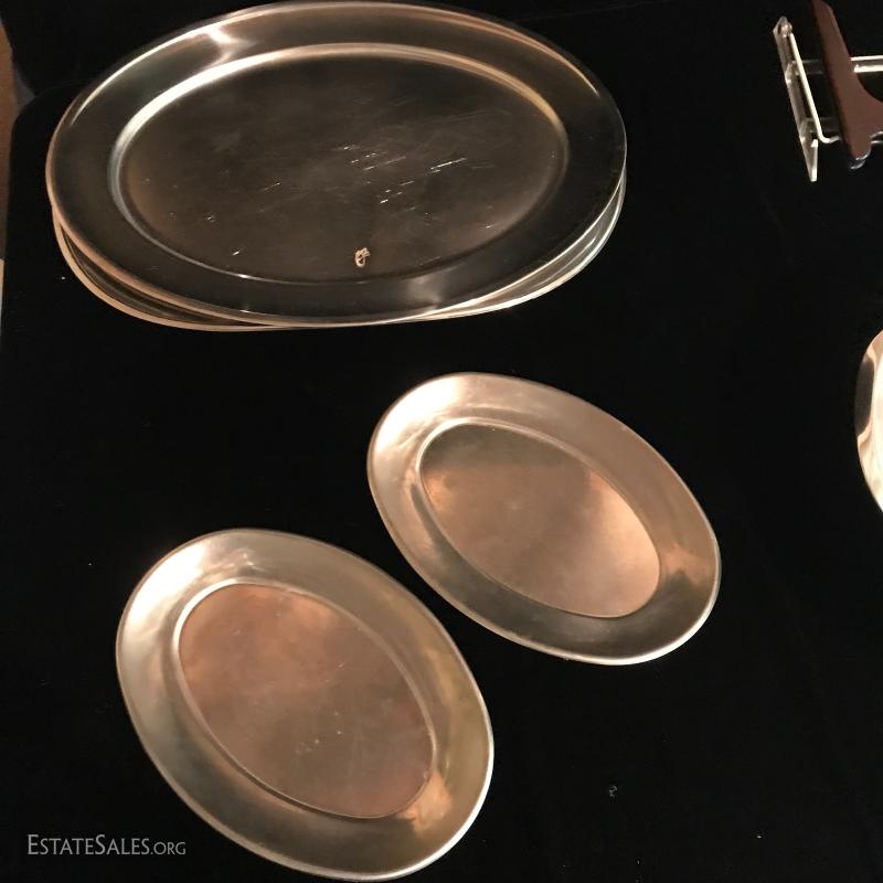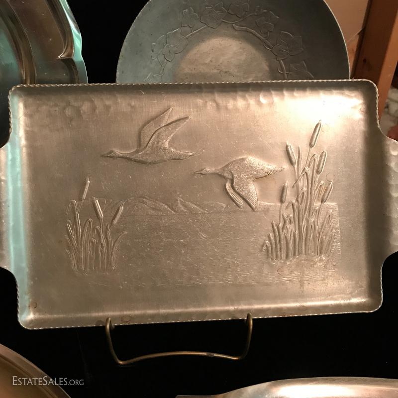 Platters, both plain and designed, in many sizes. Some are well used, others look nearly new. Large oval and rectangle platters each measure 20" x 14.5" and round platter measures 15" diameter. Goose hammered platter measures 16.5" x 9". This lot is available for shipping or local pick up in Flat Rock, NC.