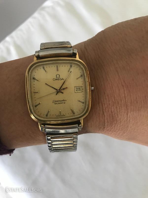 Omega Seamaster watch. See photos for details. Not currently working. Possibly just battery? No guarantees.