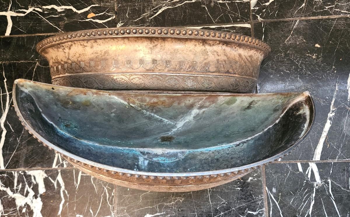 Lot #177 Pair of Silvered Demi-Lune Planters/Garden Pieces