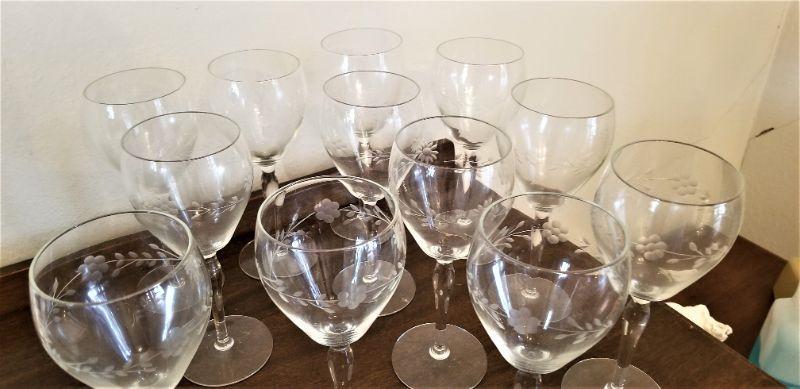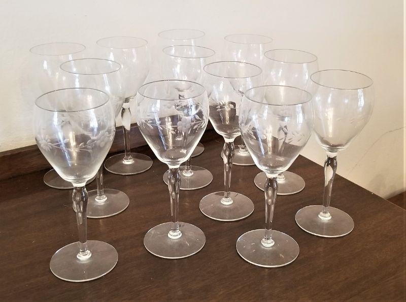 Lot #177  Set of 12 Vintage Etched Wine Glasses