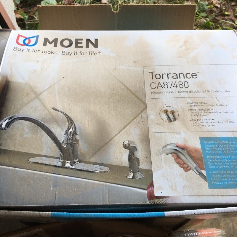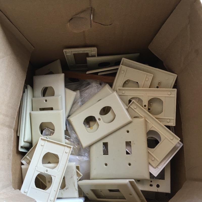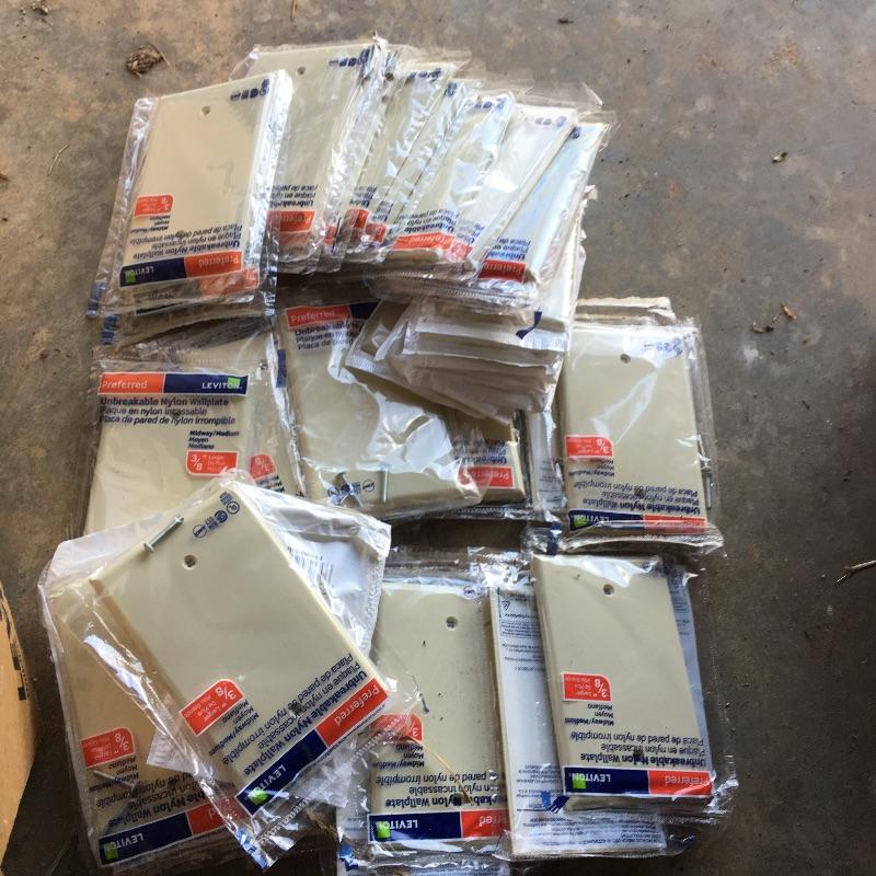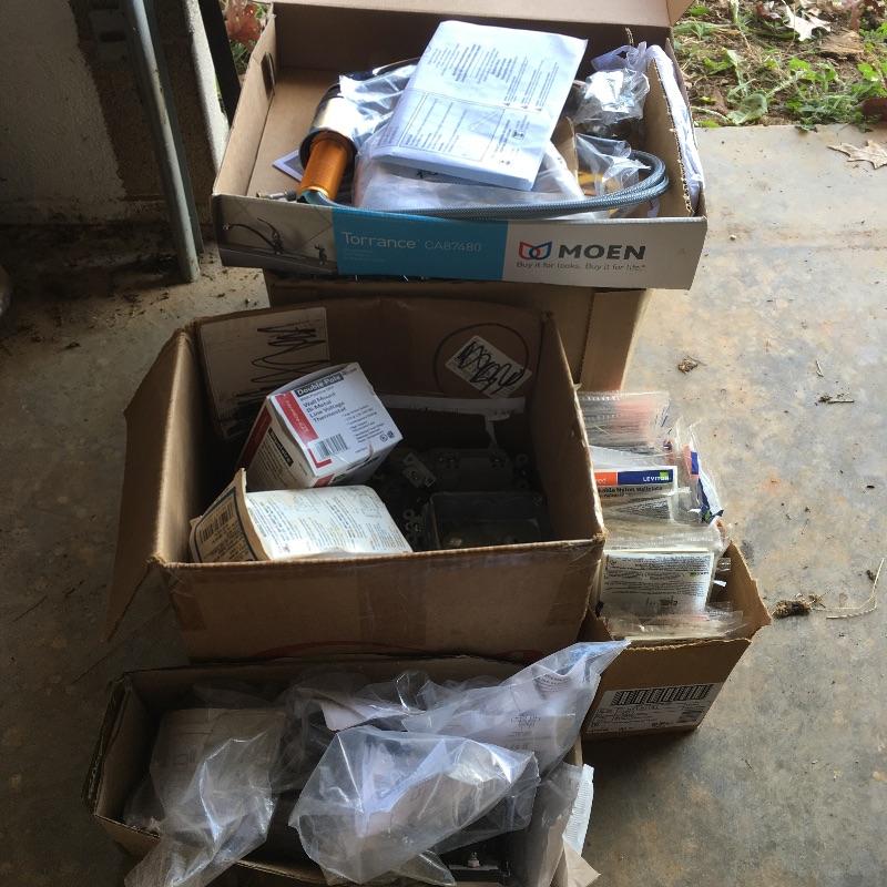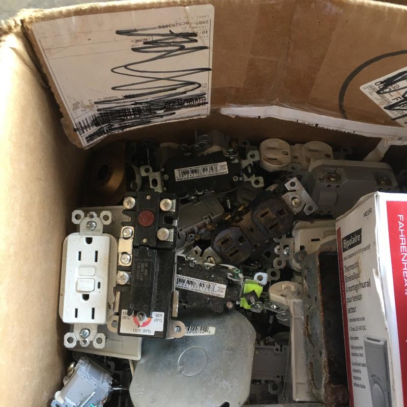 This lot includes a Moen Torrance Kitchen faucet, water heater thermostat, switch plates, a selection of outlets and more.