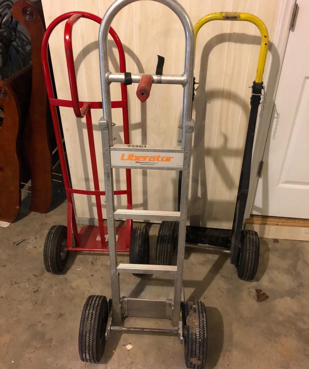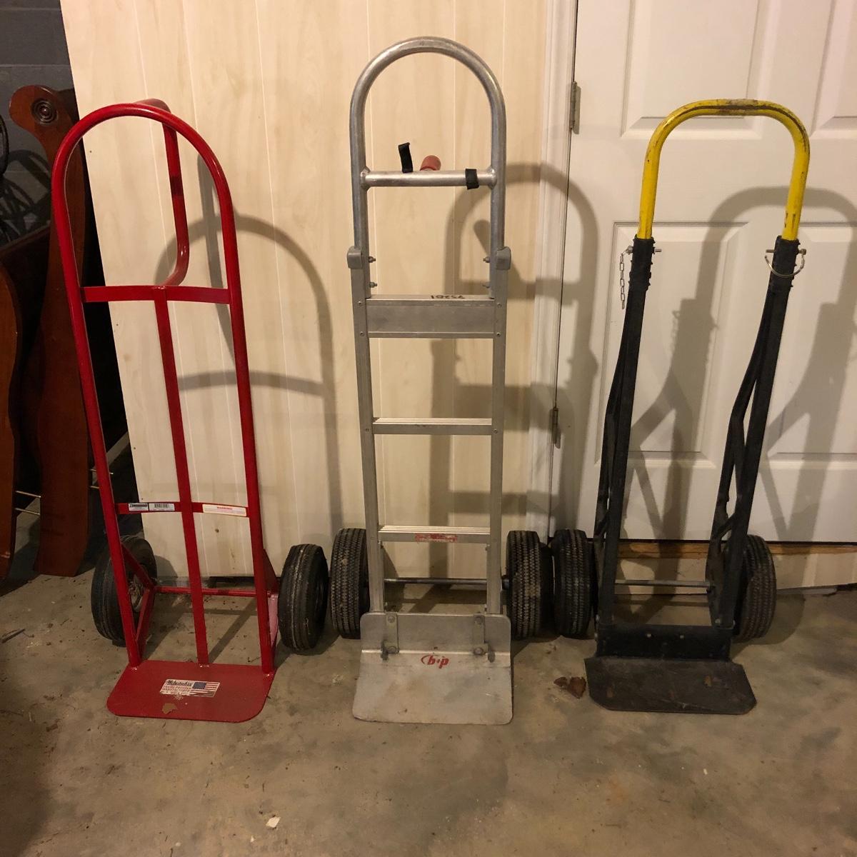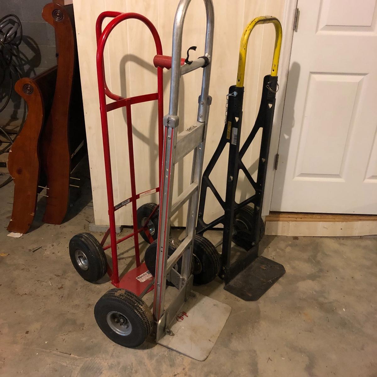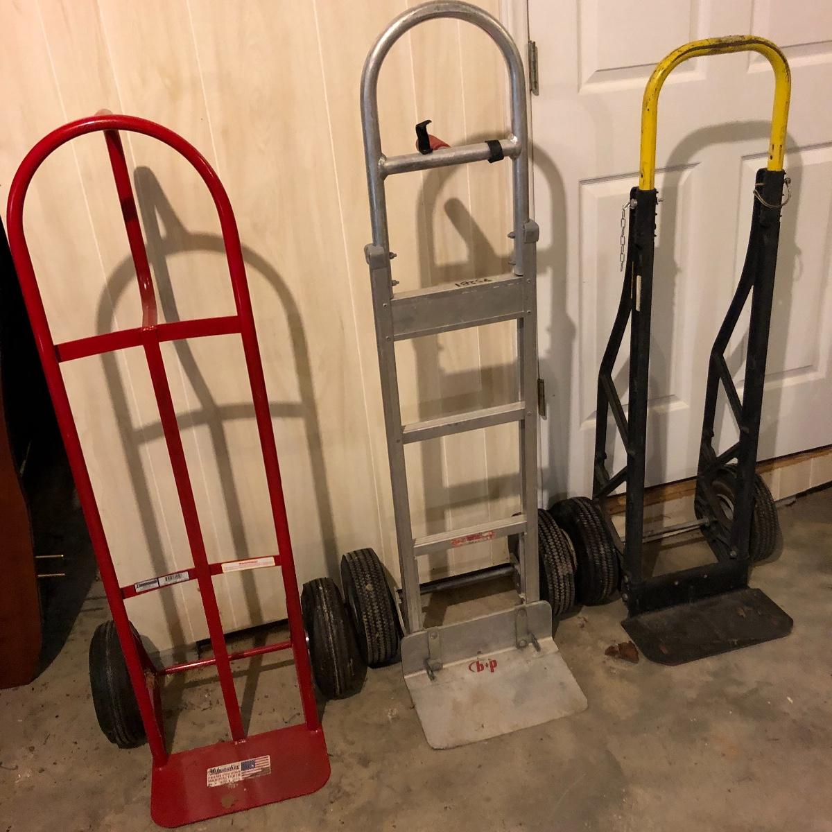 Not one but three hand trucks for you here; pick your workhorse between an aluminum, steel or plastic framed truck.