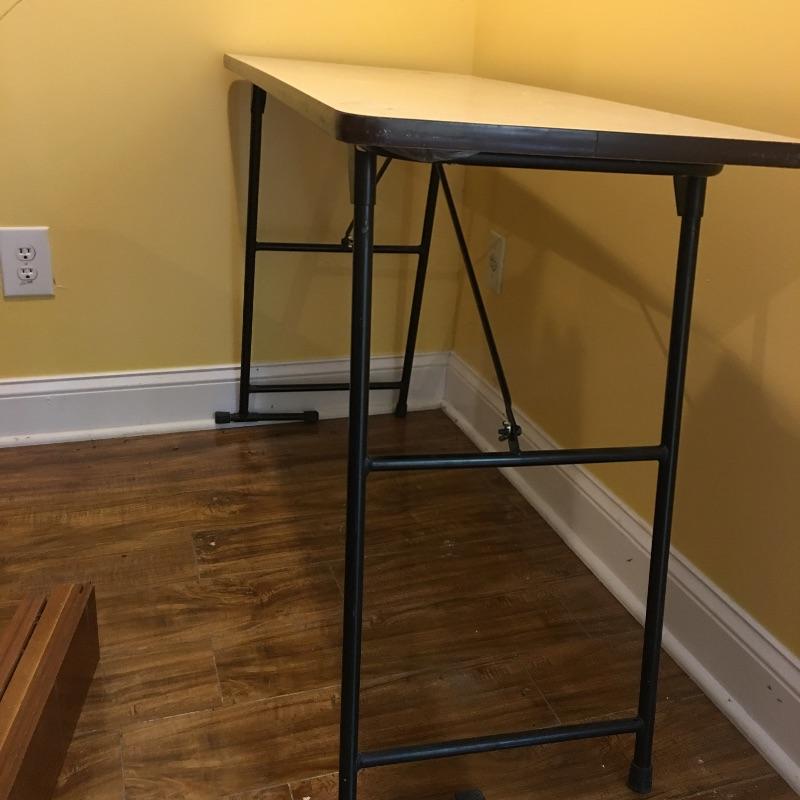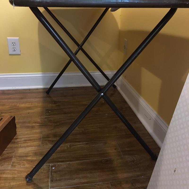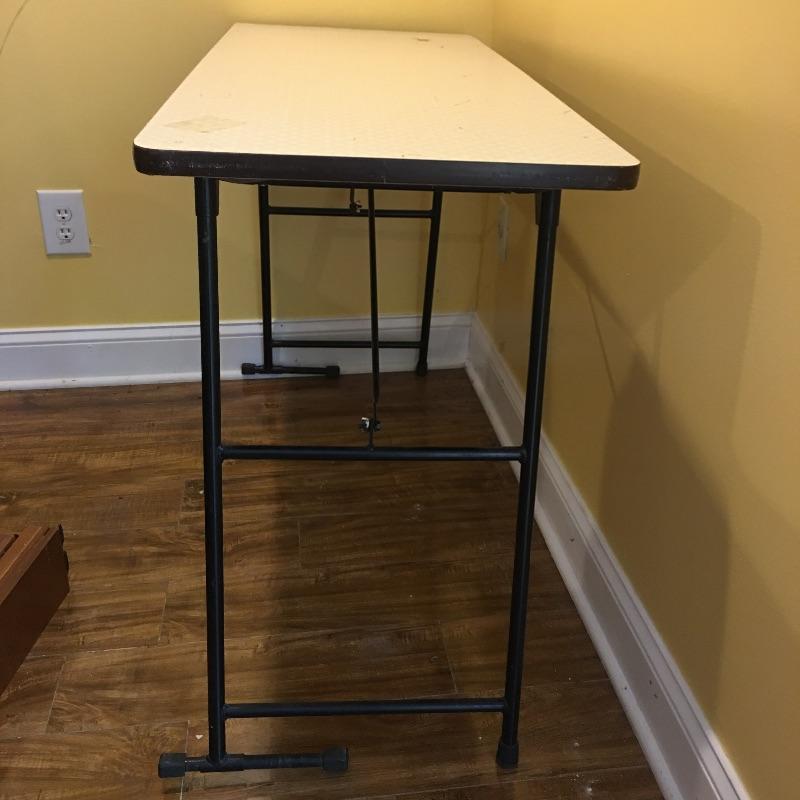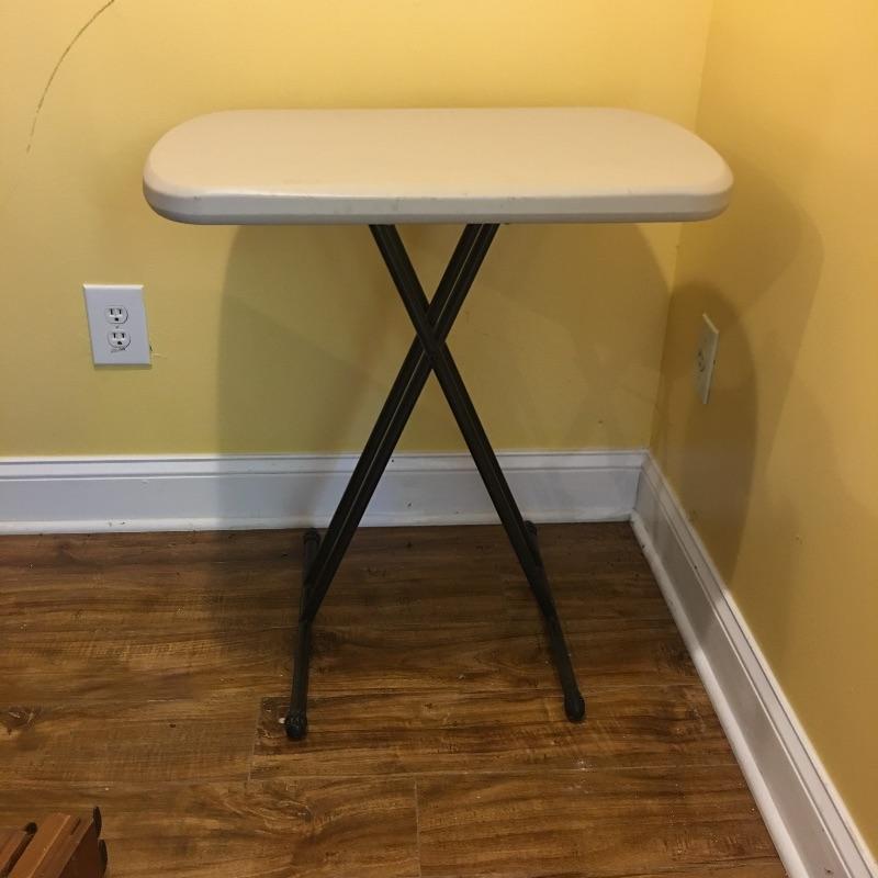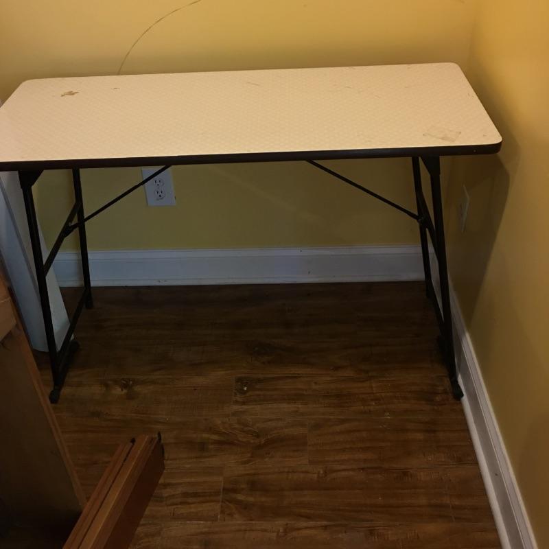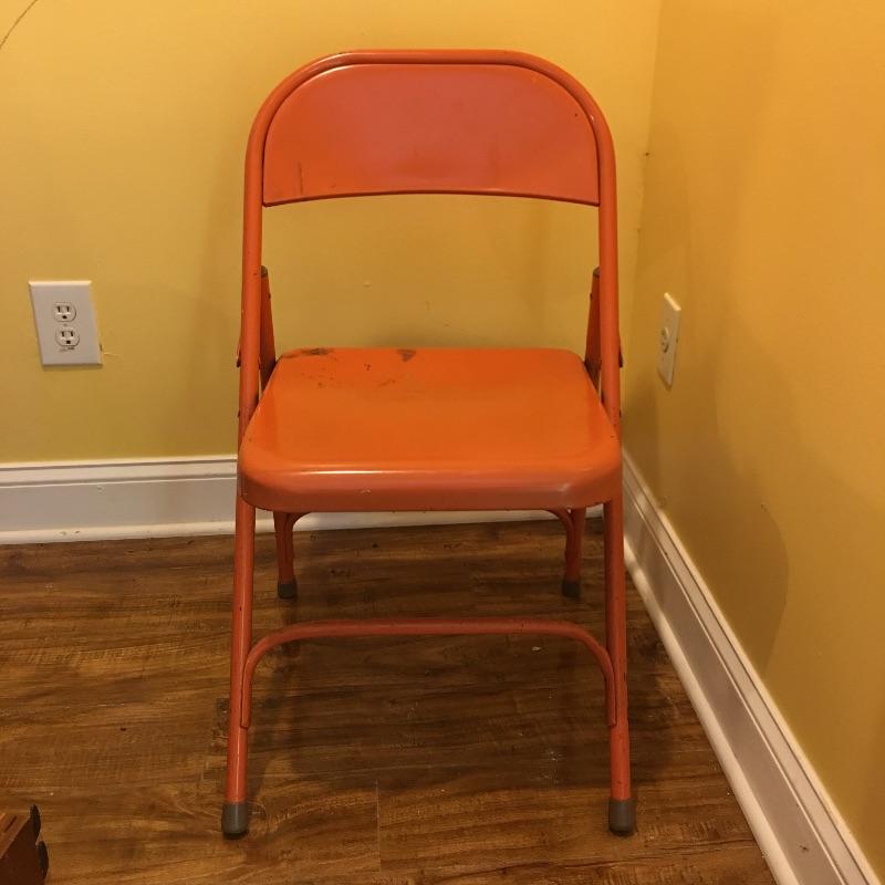 Be ready for any eventuality with this trio of folding tables that includes one with padded top, one with linoleum top and a plastic table. Also includes orange metal folding chair. Largest table measures 24” x 48” x 28.5”.
