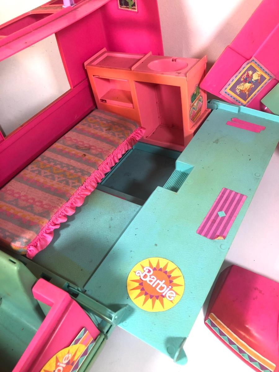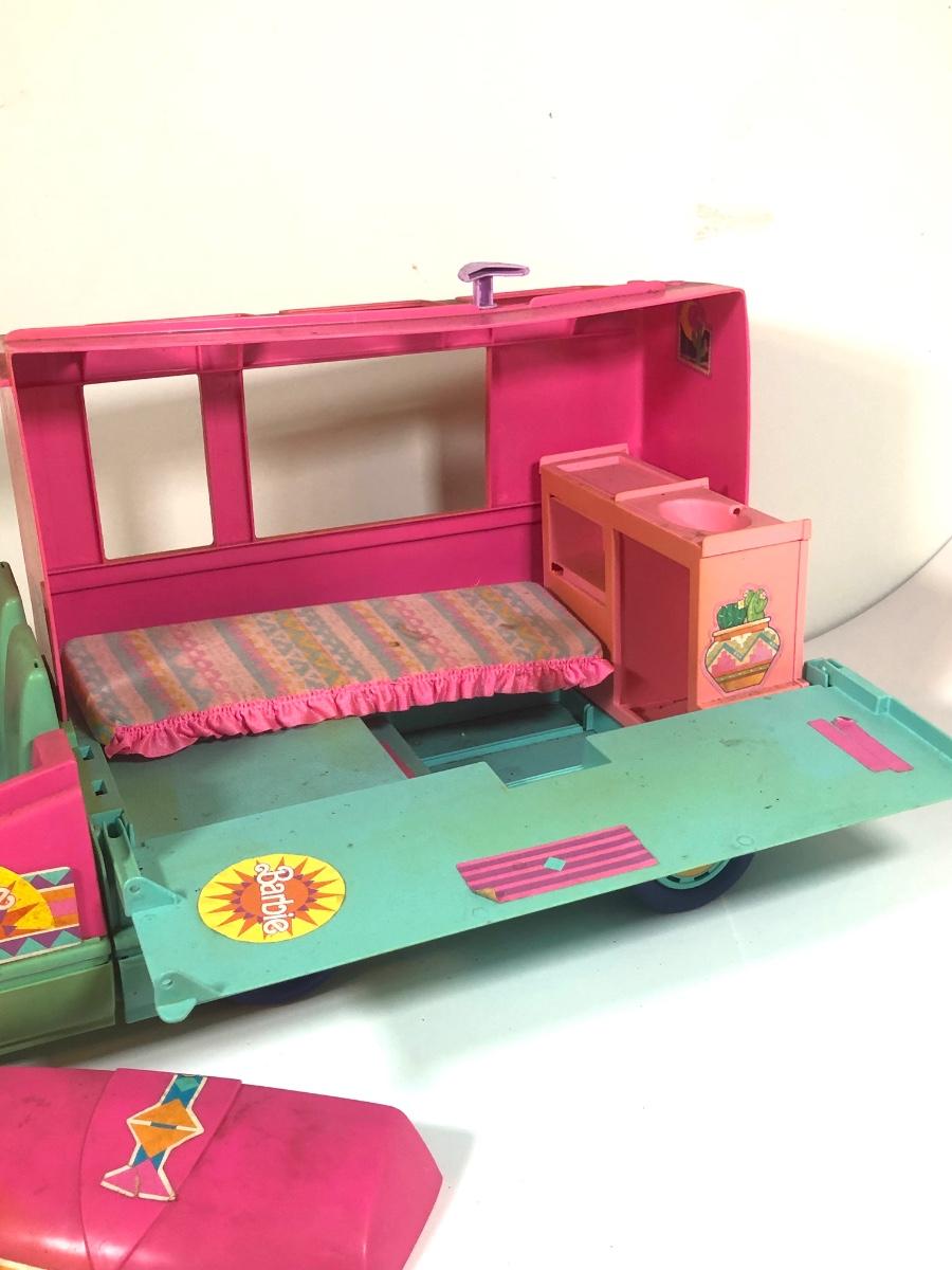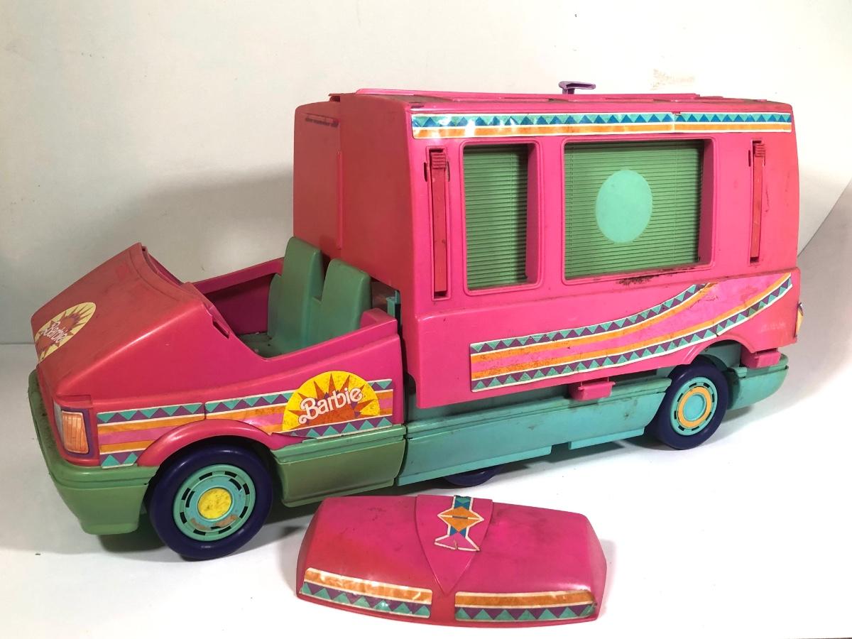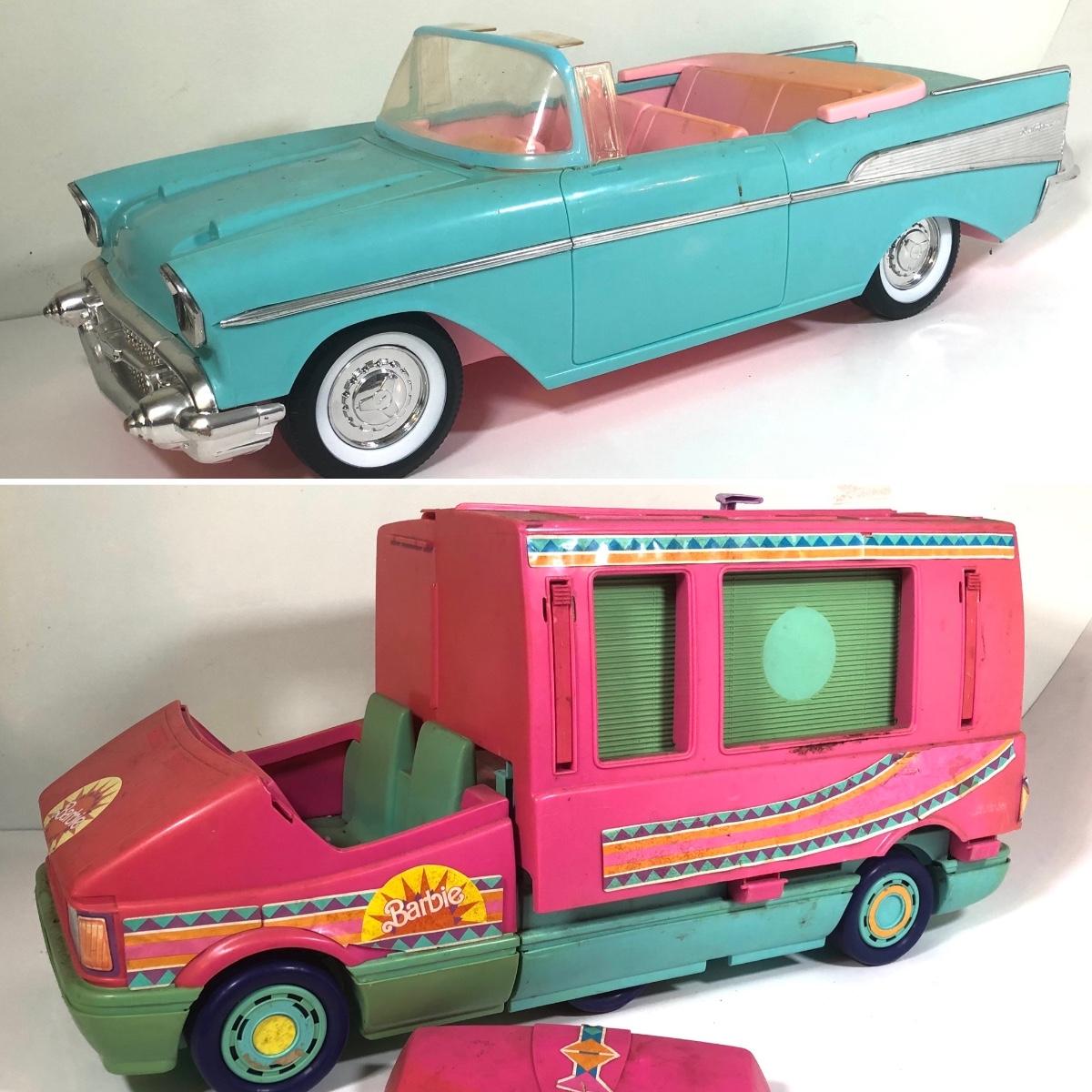 LOT 177L: Vintage 1988 Mattel Turquoise Barbie '57 Chevy Bel Air Convertible Car & Vintage 1989 Mattel Barbie Western Fun Motor Home RV Camper Van