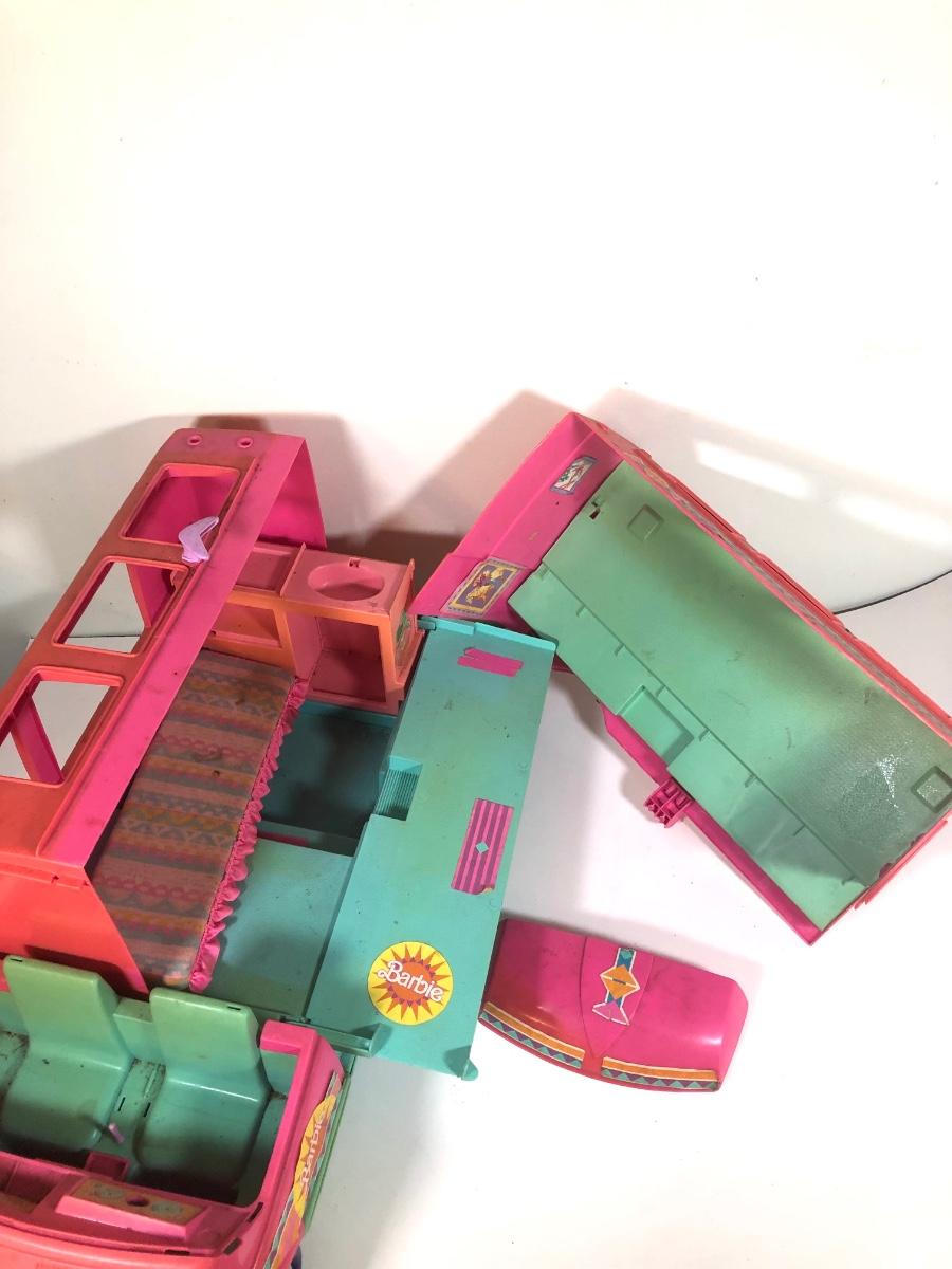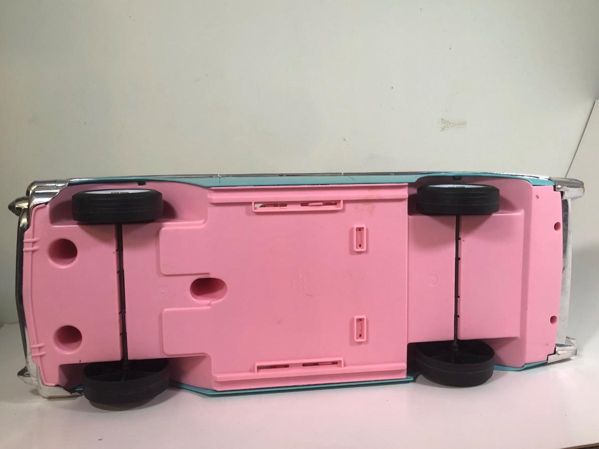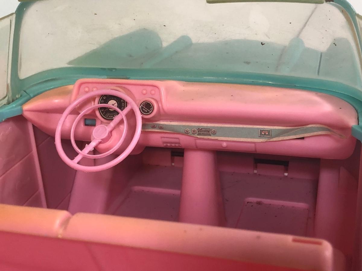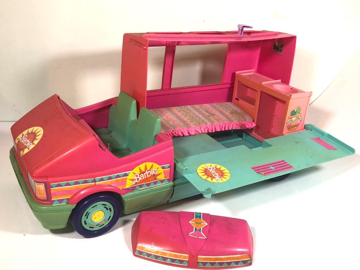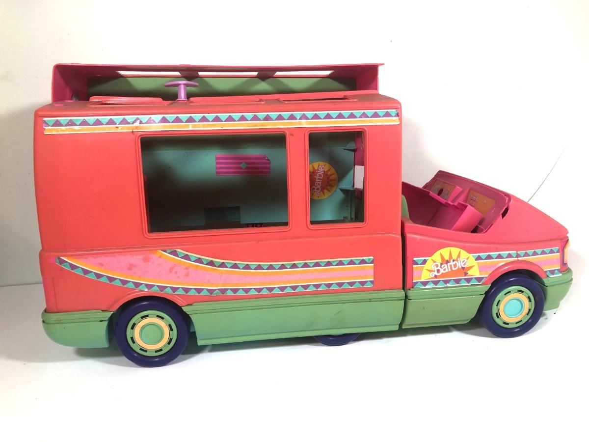 LOT 177L: Vintage 1988 Mattel Turquoise Barbie '57 Chevy Bel Air Convertible Car & Vintage 1989 Mattel Barbie Western Fun Motor Home RV Camper Van