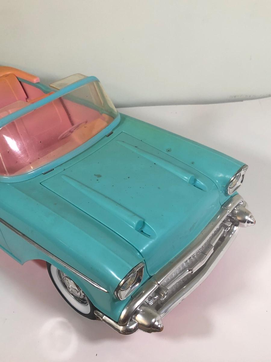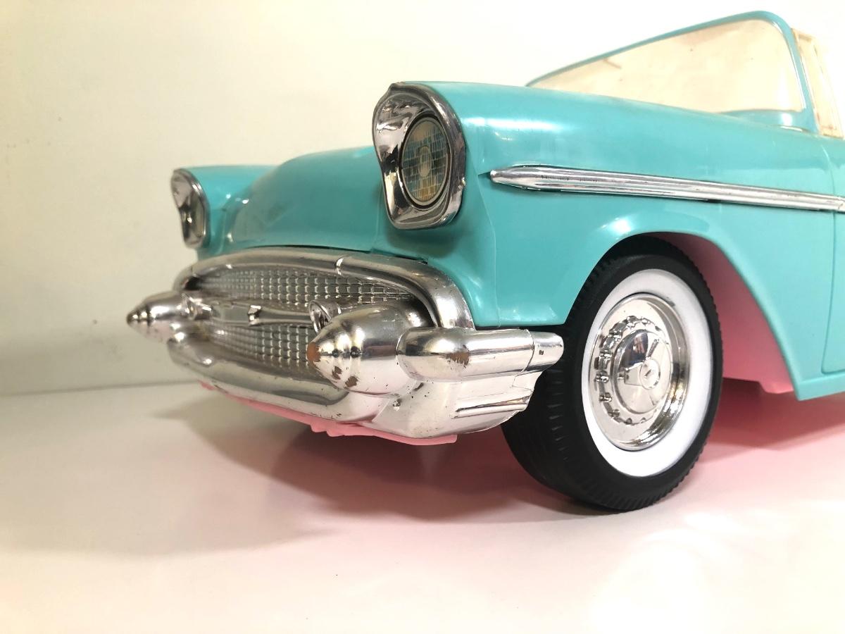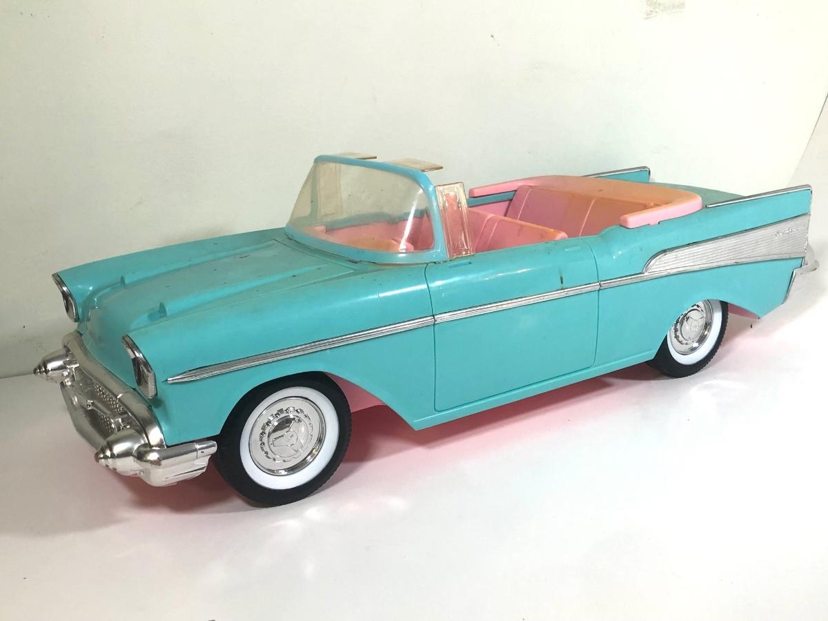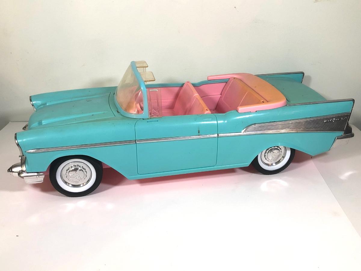 LOT 177L: Vintage 1988 Mattel Turquoise Barbie '57 Chevy Bel Air Convertible Car & Vintage 1989 Mattel Barbie Western Fun Motor Home RV Camper Van